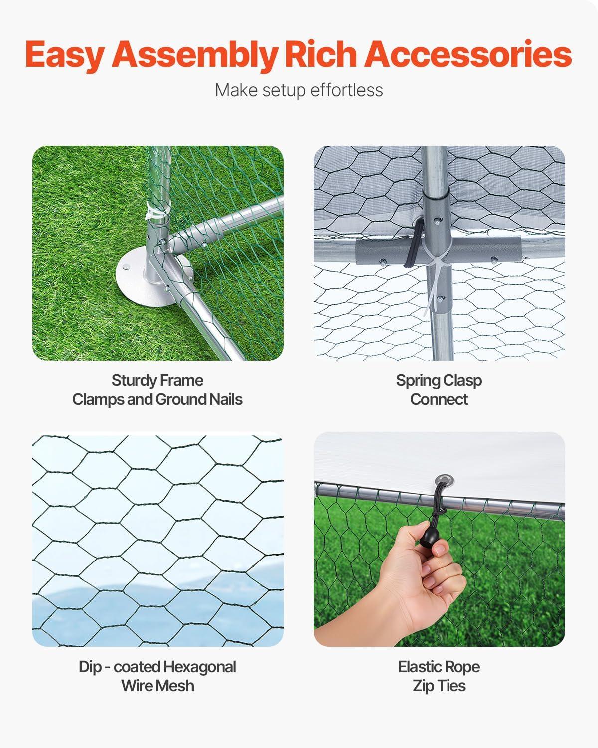 Stable Structure: The 1-inch steel pipes and hexagonal plastic-coated wire mesh provide strength and security. The top is designed for effective drainage, preventing water accumulation risks. The hexagonal mesh also enhances safety, doubling the protection for your poultry.