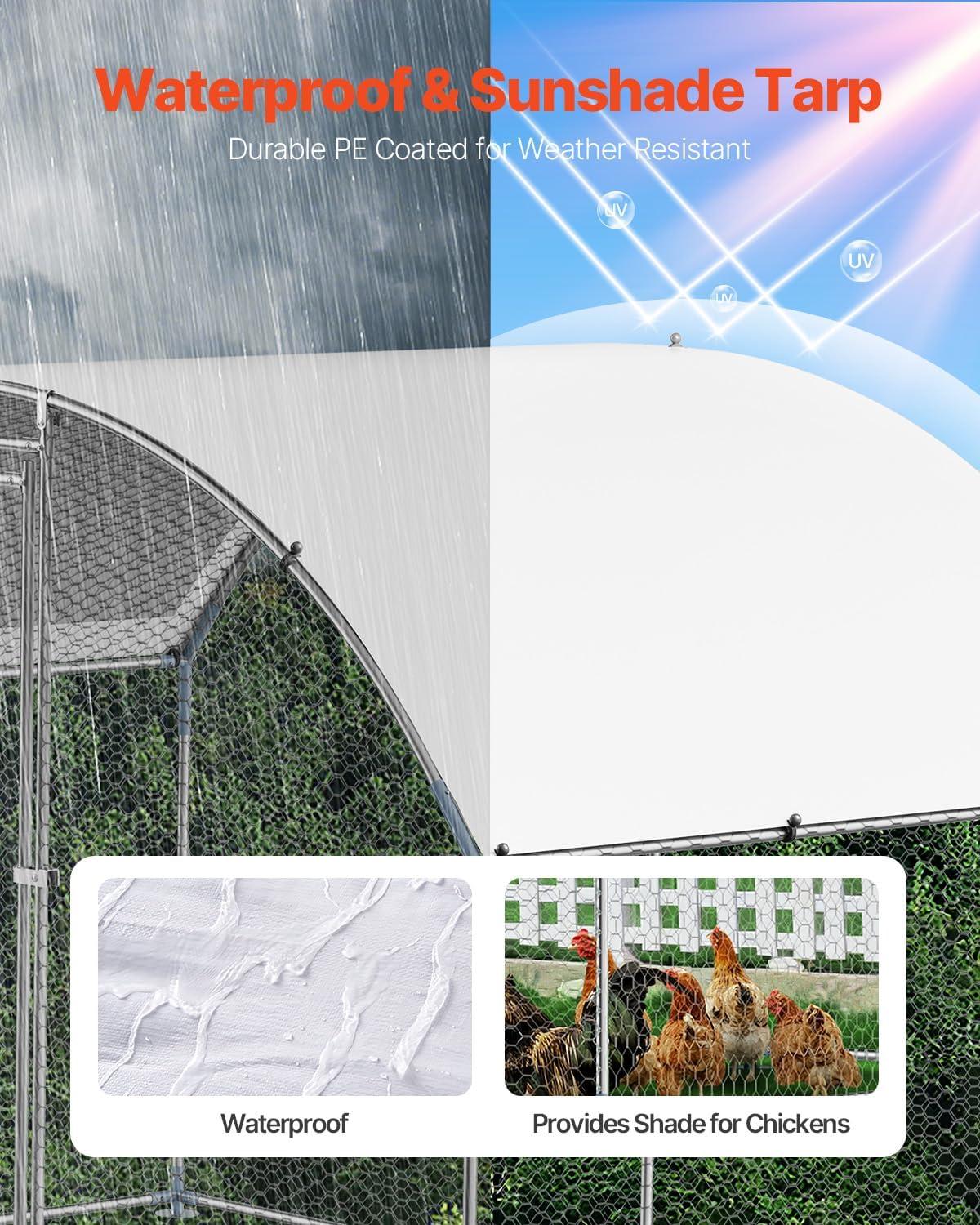 VEVOR Large Metal Chicken Coop with Run, Walkin Chicken Coop for Yard with Waterproof Cover, 6.5 x 9.8 x 6.5 ft, Spire Roof Large Poultry Cage for Hen House, Duck Coop and Rabbit Run(Dome Roof)