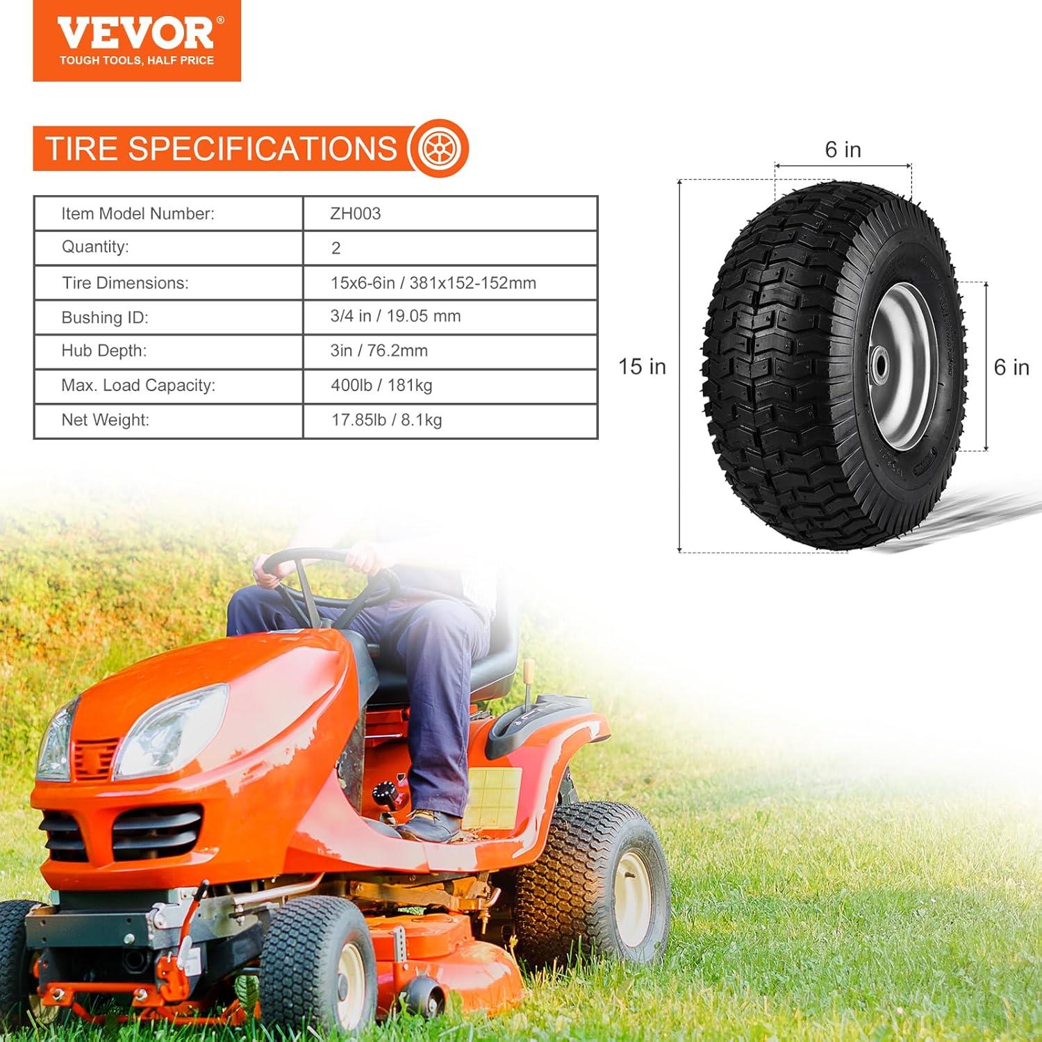 The VEVOR 20×8-8″ pneumatic lawn tires are durable and support up to 965lb. Designed to minimize lawn damage and enhance equipment performance, they're versatile for various garden machines and securely packaged for delivery.