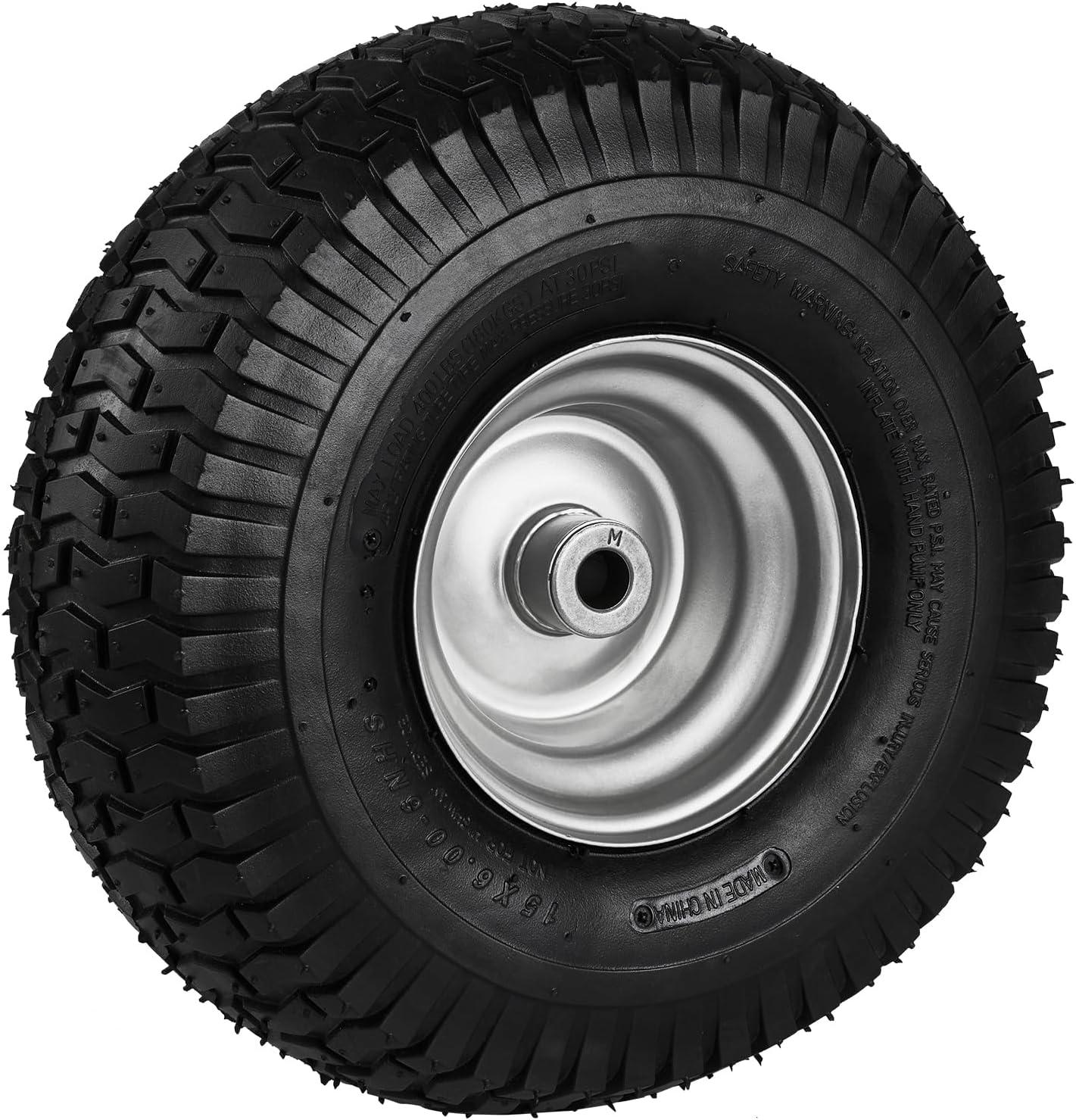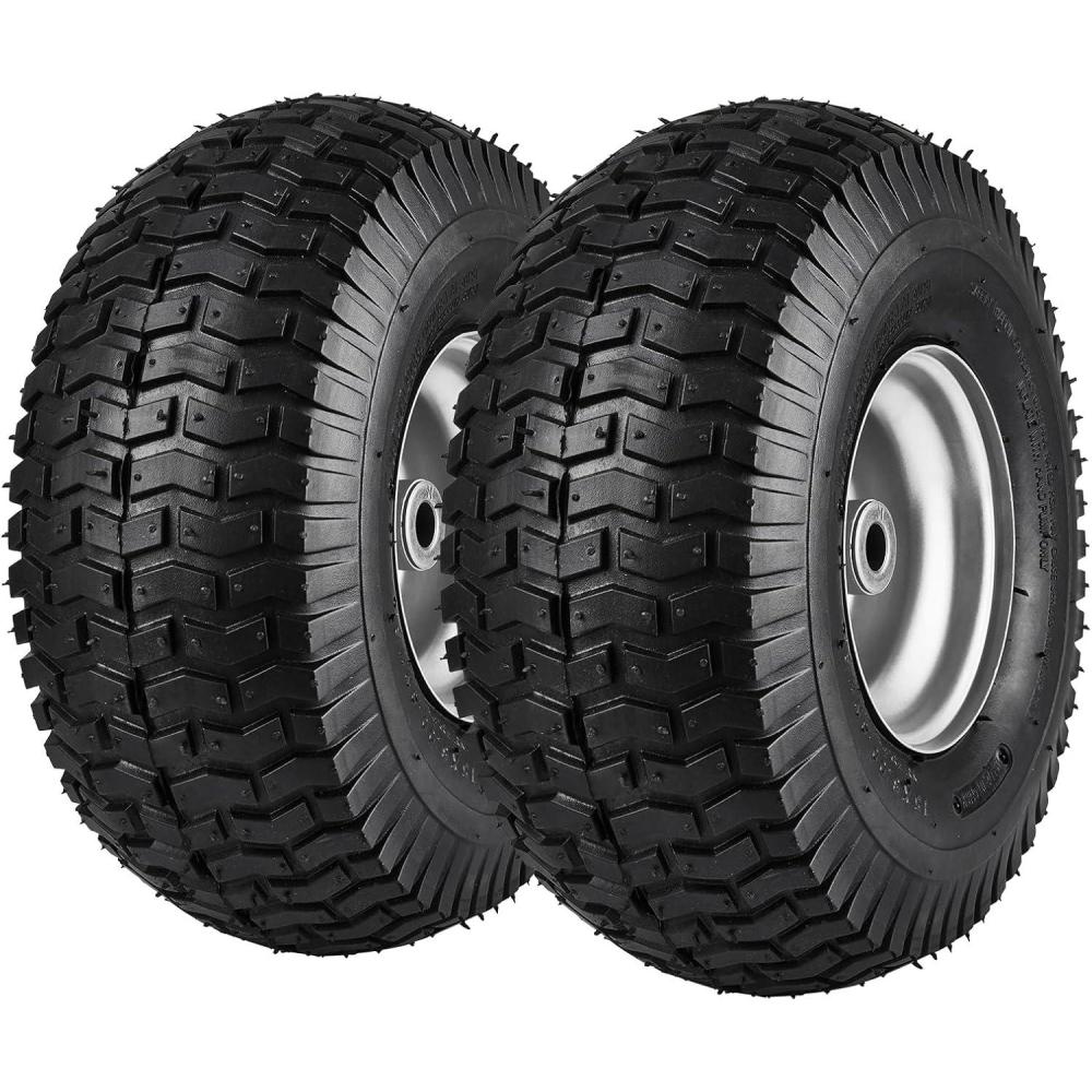 Pneumatic Tires: Double the reliability, Double the comfort. Our lawn mover tires are made from premium rubber with a max pressure of 22psi and patterned tread for superior grip and shock absorption, ensuring stability and a smoother ride.
