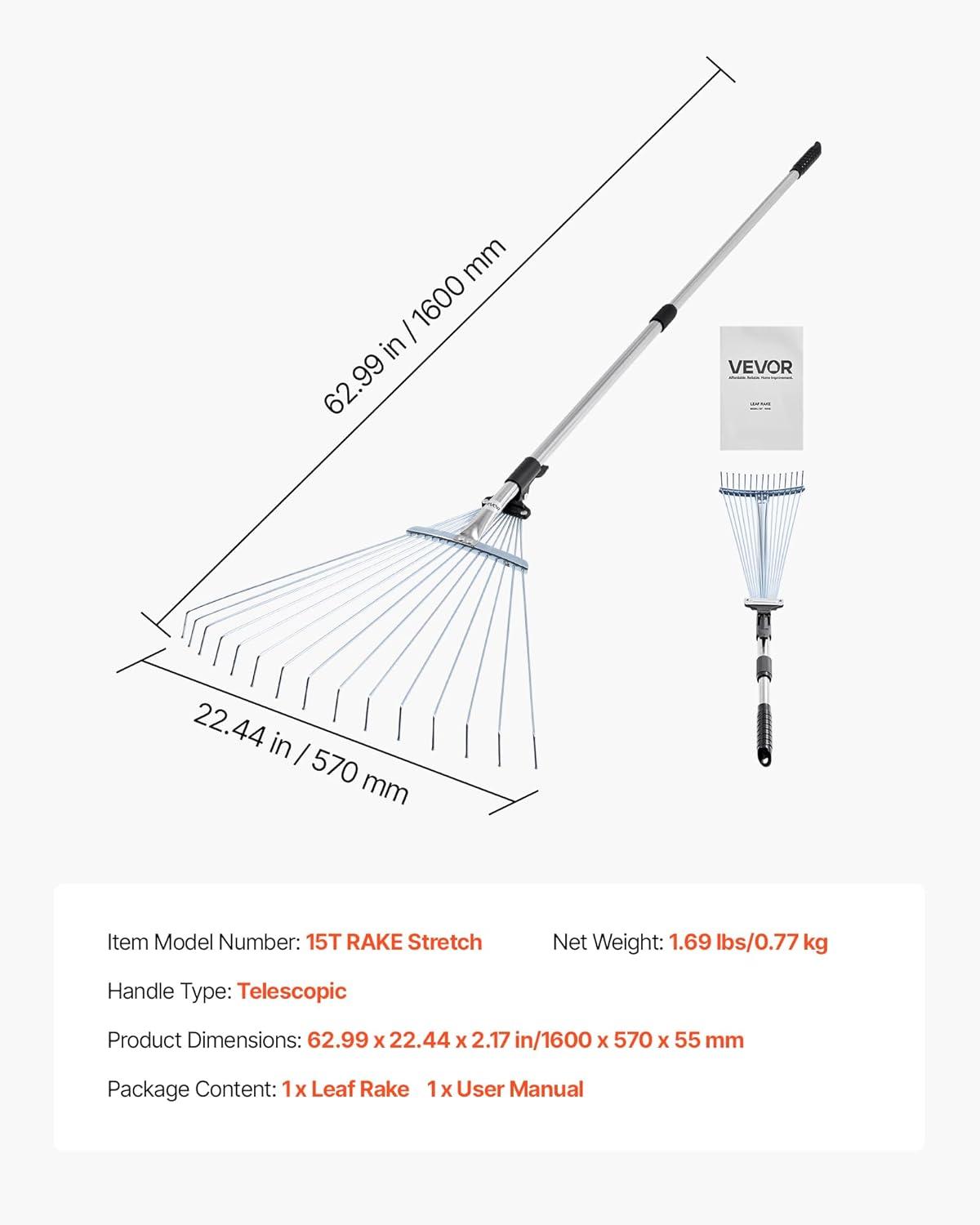 Be the first to review “VEVOR Leaf Rake, 25 Metal Tines, Adjustable Garden Rake for Lawns with 18.3 Inch Wide Head & 36.4-72.8 Inch Long Handle, Heavy Duty Stainless Steel Small Leaves Tool for Gardening Camping Yard Grass(7.5-22.4in width)”