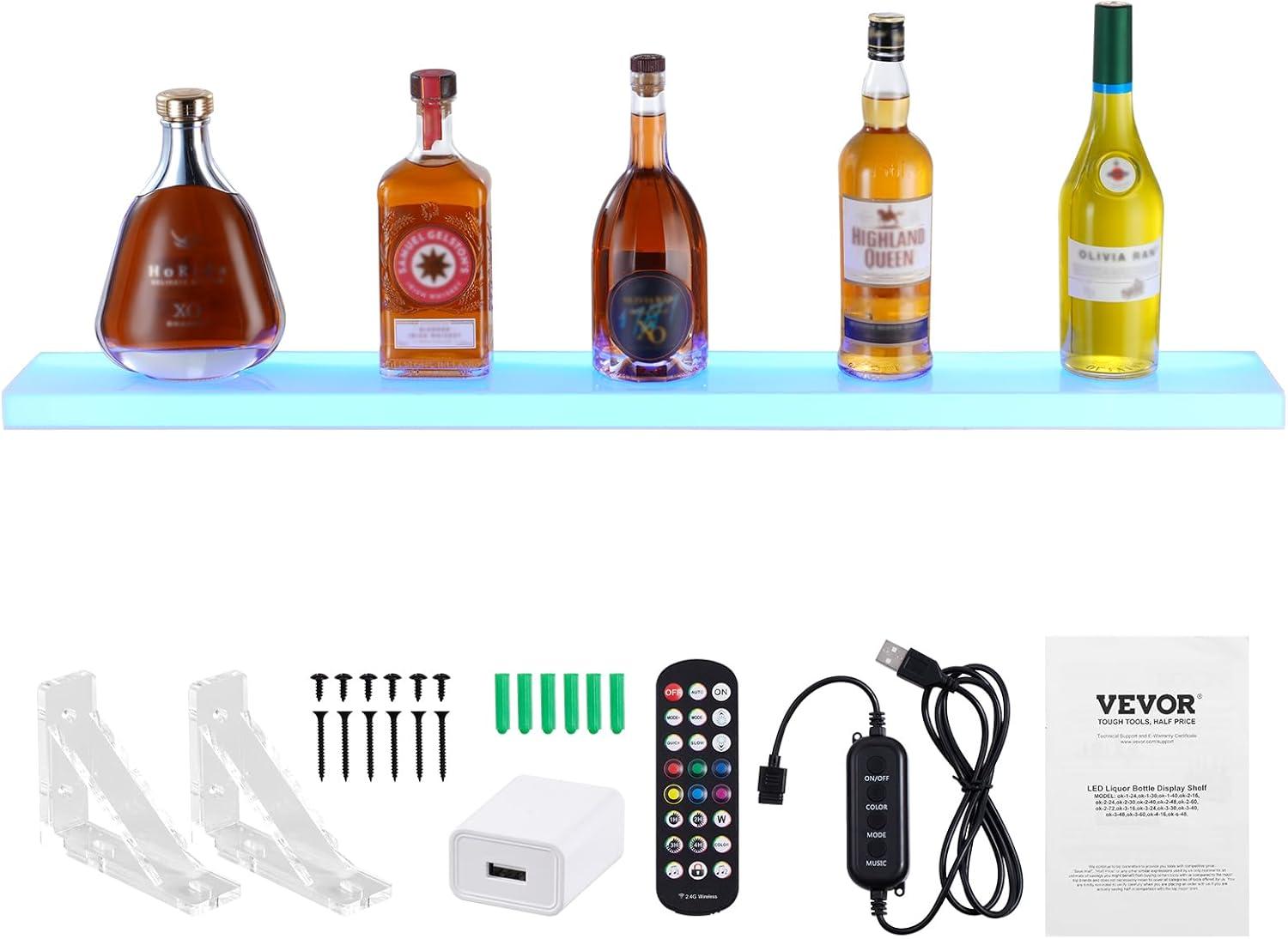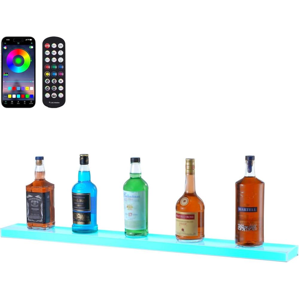 Large-capacity Display Space: One-tier 60-inch countertop shelf (wall-mountable) made of durable acrylic, designed to hold up to 15 wine bottles. It's ideal for stylish, convenient collection showcase