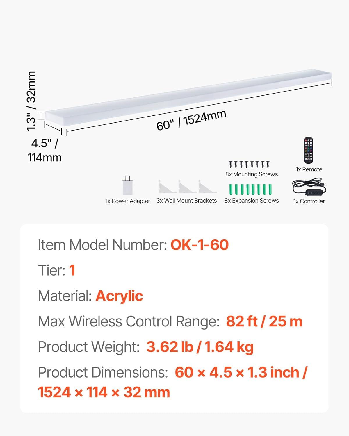 Be the first to review “VEVOR LED Lighted Liquor Bottle Display, 1 Tier 60 Inches Whiskey Rack, Supports USB, Illuminated Home Bar Shelf with RF Remote & App Control, 7 Static Colors, Acrylic Lighted Shelf for 15 Bottles(1 Step 60 Inches)”