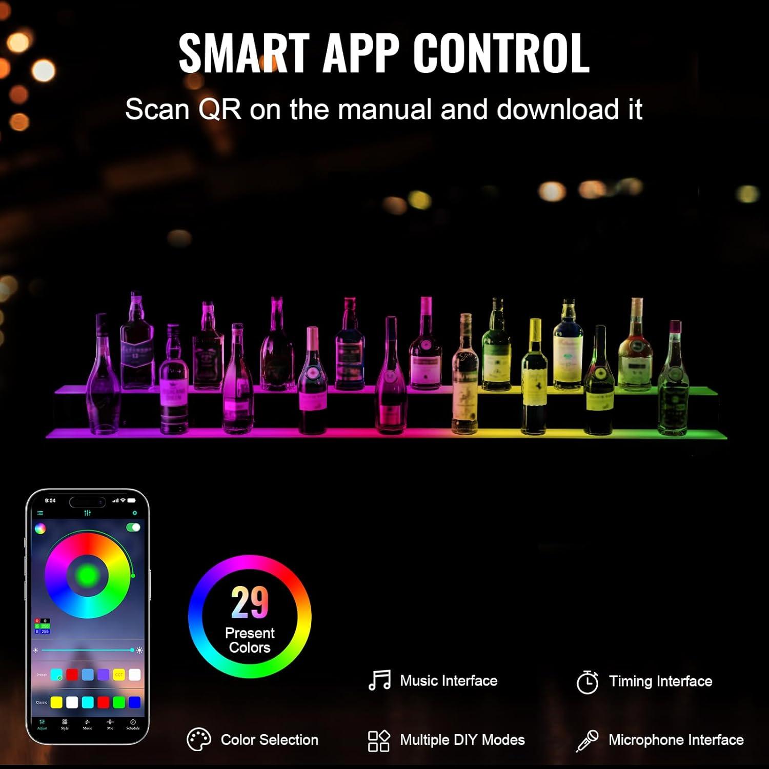 Get your hands on our exclusive VEVOR LED Lighted Liquor Bottle Display, 1 Tier 60 Inches Whiskey Rack, Supports USB, Illuminated Home Bar Shelf with RF Remote & App Control, 7 Static Colors, Acrylic Lighted Shelf for 15 Bottles(2 Step 72 Inches) collection, now at a discounted price.