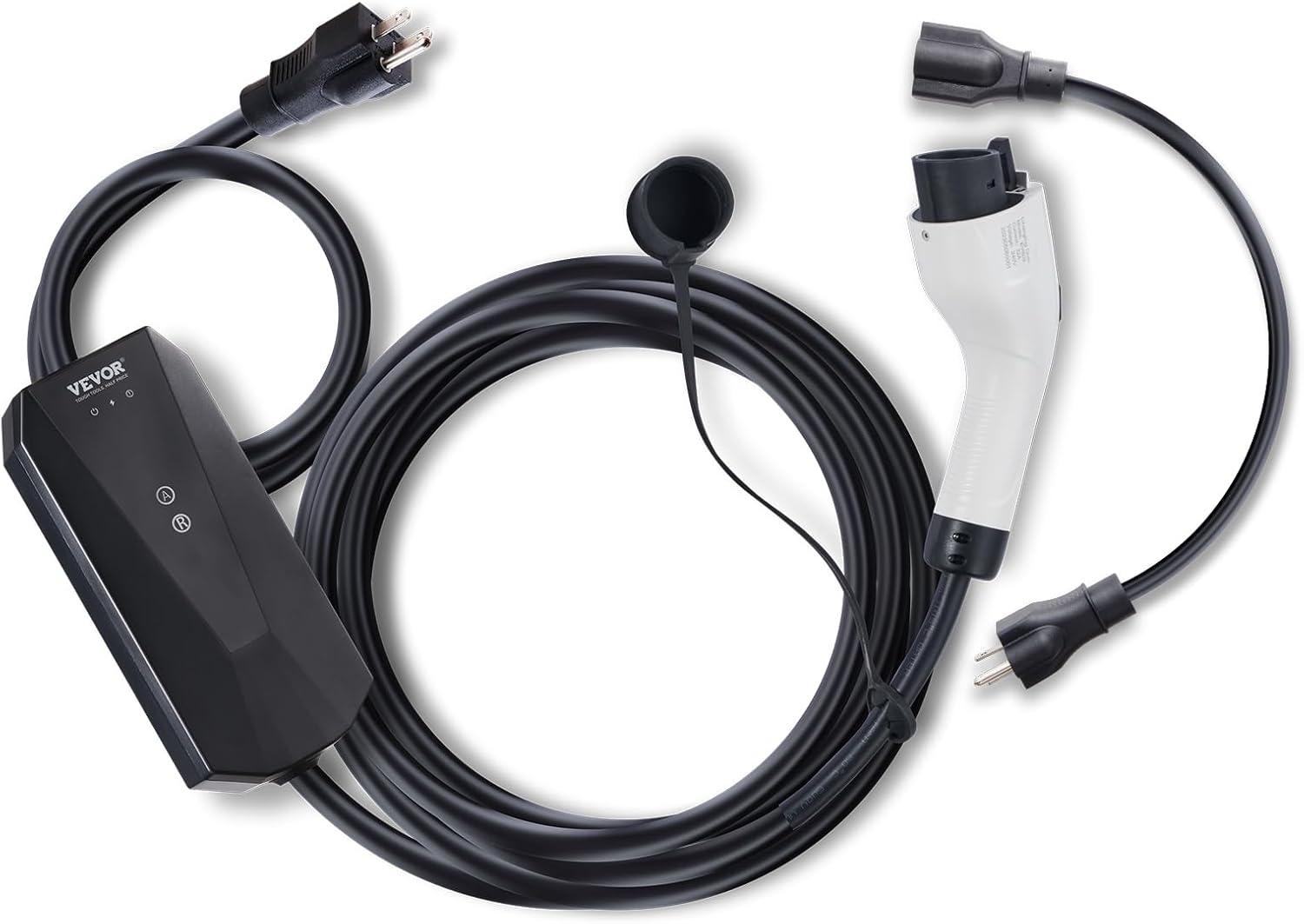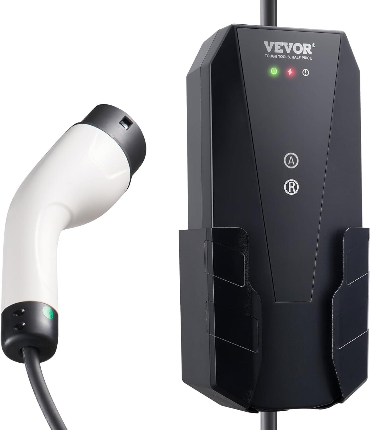VEVOR Level 2 Portable EV Charger, 40A 240V, Electric Vehicle Charger with 25 ft Charging Cable NEMA 14-50P Plug, 40A/32A/24A/16A Adjustable Current Plug-in Home EV Charging Station for SAE J1772 EVs(32 Amp)