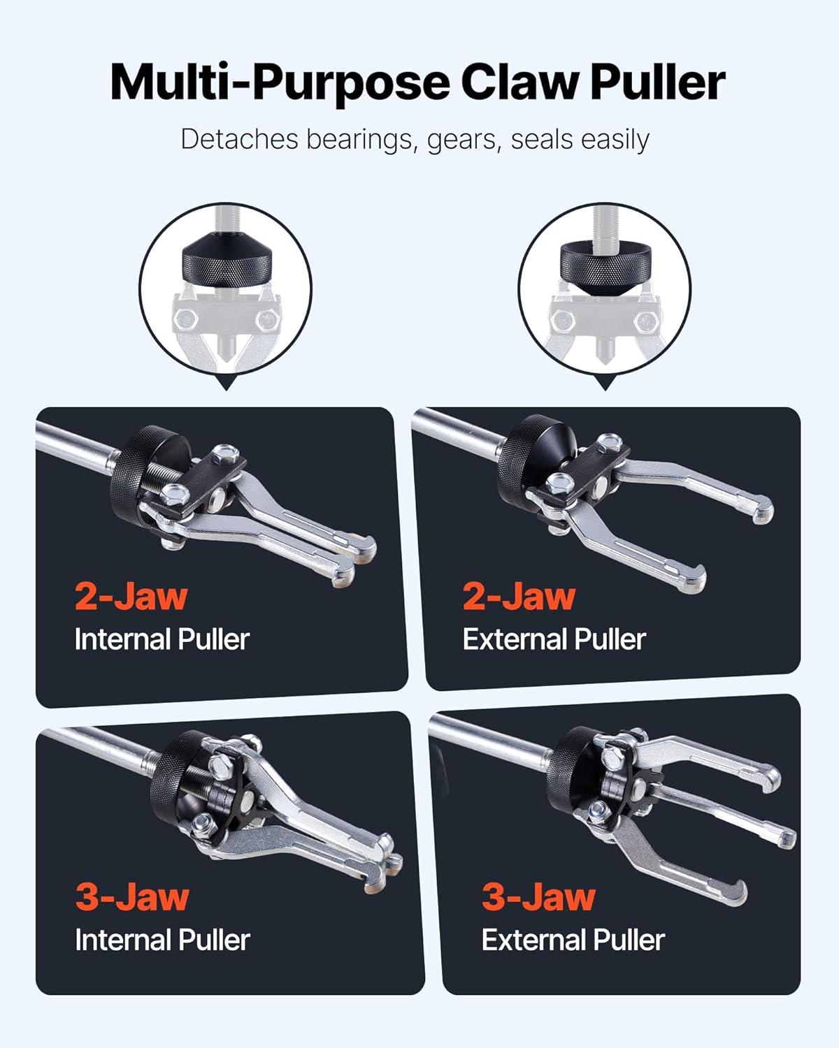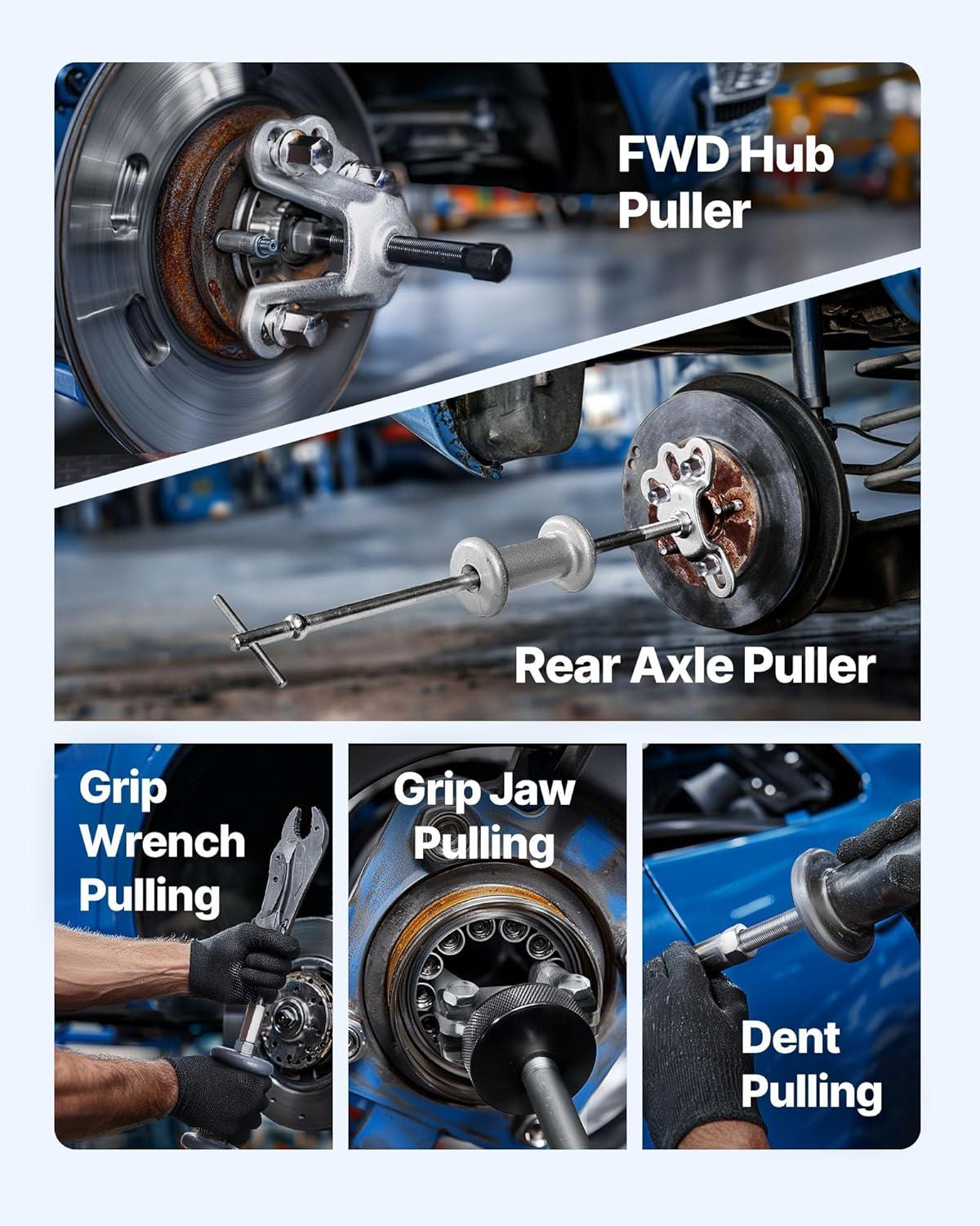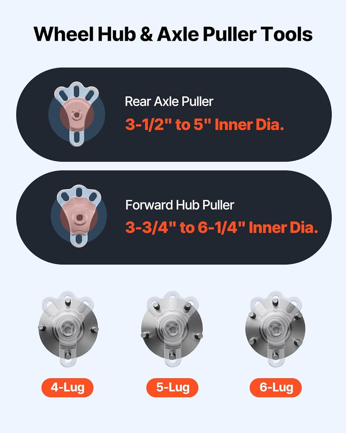 Premium Pull Plate: Our products are equipped with a total of 7 pcs pull plates (75-80 mm, 85-90 mm, 95-100 mm, 105-110 mm, 115-120 mm, 125-130 mm, 135-138 mm), which have a more extensive disassembly range and more comprehensive functions. 7 pcs pull plates are all cut from 45# steel, thickened, and hardened.