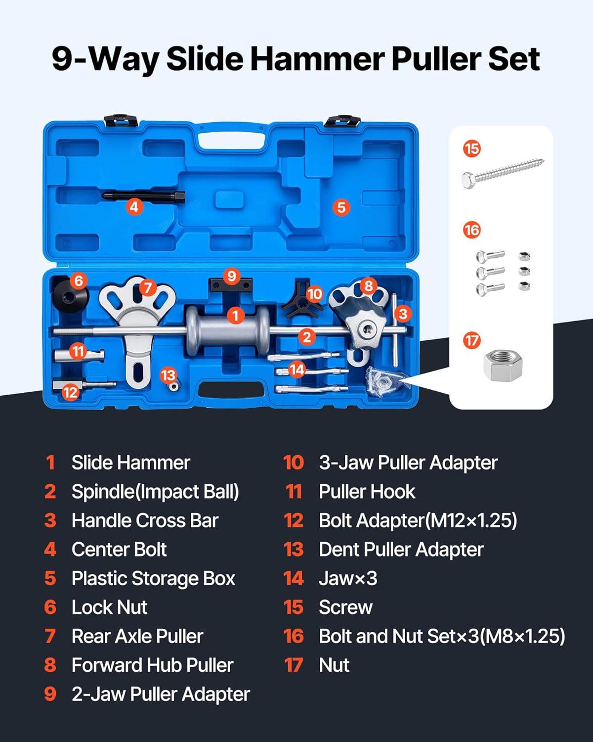 VEVOR Liner Puller Cylinder Liner Puller, Diesel Engines Liner Puller Tool, Both Dry-Type and Wet-Type Fit Diameter of 75 mm-138 mm, Universal Cylinder Liner Puller Tool Set for Auto Repair(slide hammer puller set)