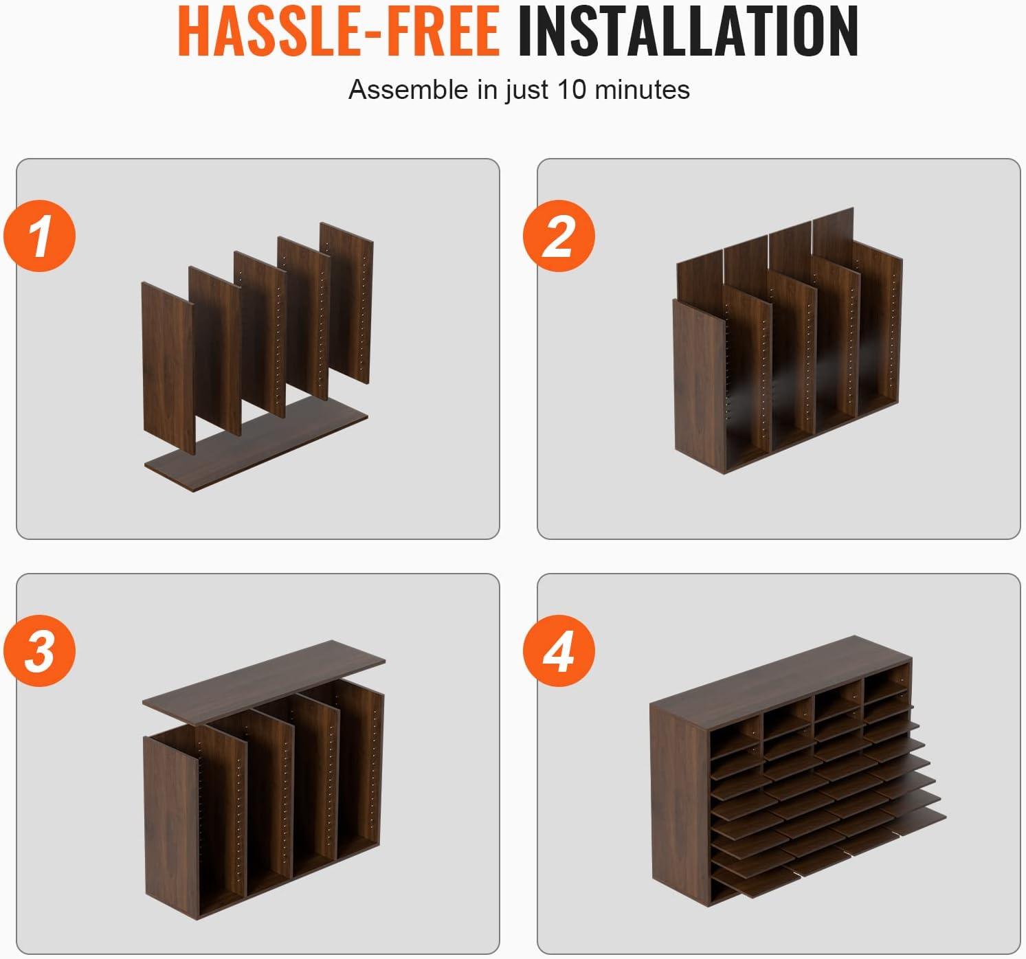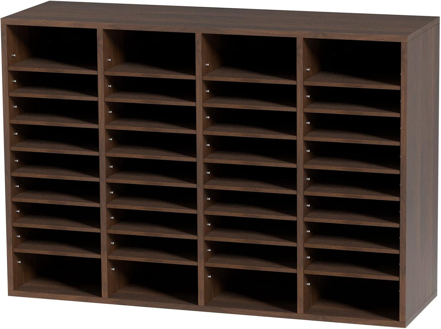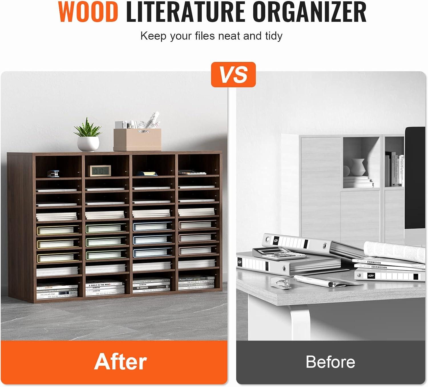VEVOR Literature Organizer, 27 Compartments Office Mailbox with Removable Shelves, Wood Mailbox Sorter Particle Board Office Home Classroom Storage, File Sorter for File, Document, Paper, Black-Grey(Brown)