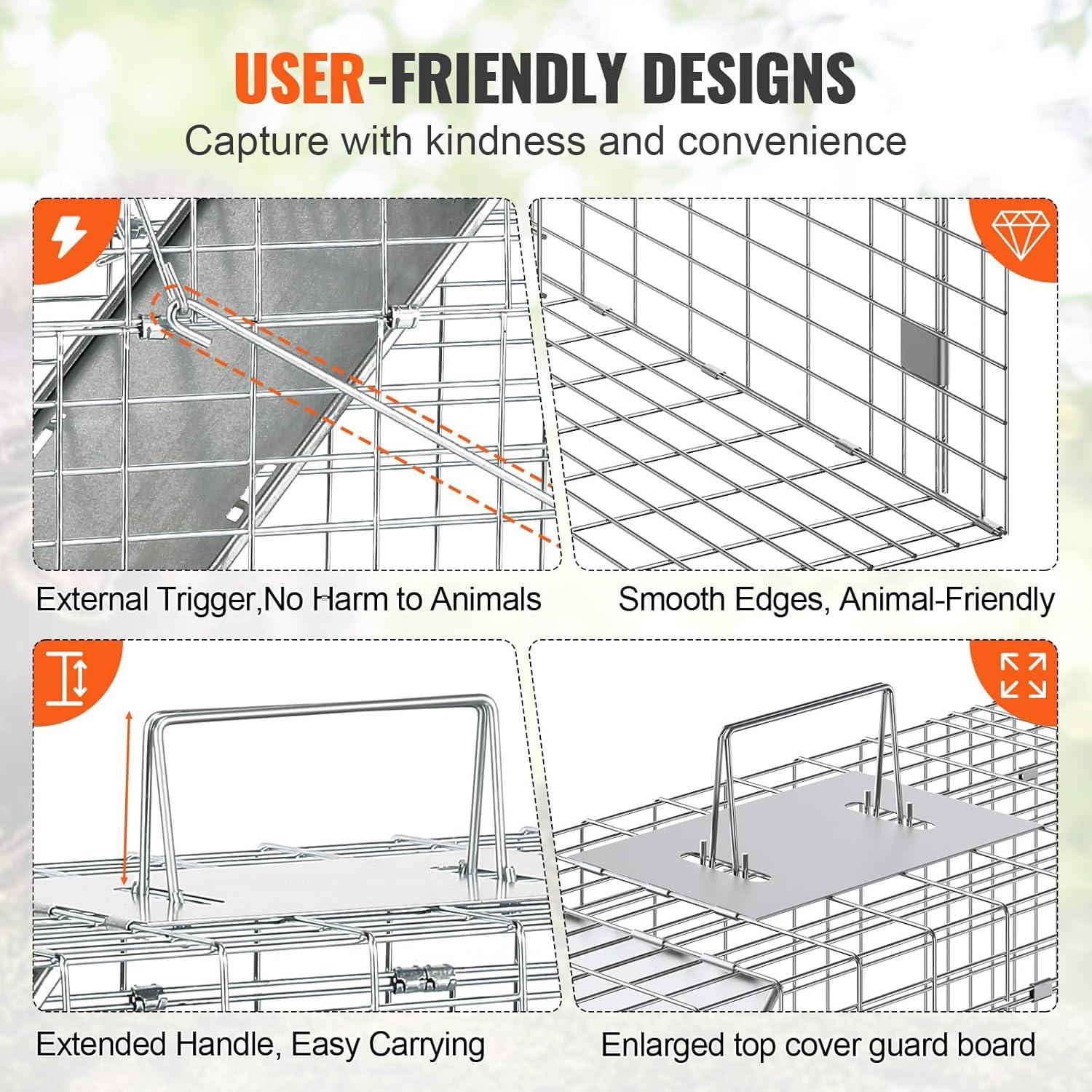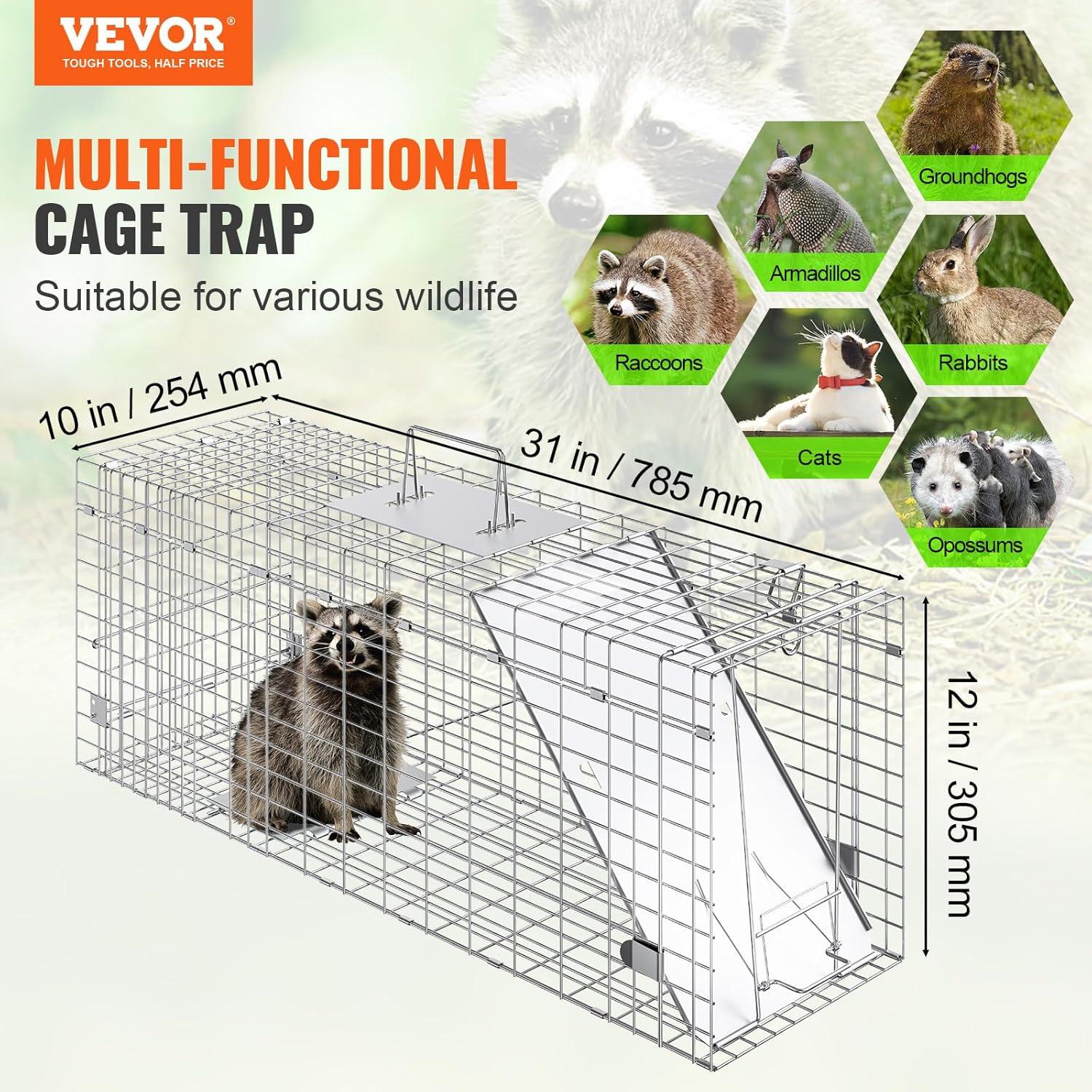 imageVEVOR Live Animal Cage Trap 31quot x 10quot x 12quot Humane Cat Trap Galvanized Iron Folding Animal Trap with Handle for Rabbits Stray Cats Squirrels Raccoons Groundhogs and Opossums