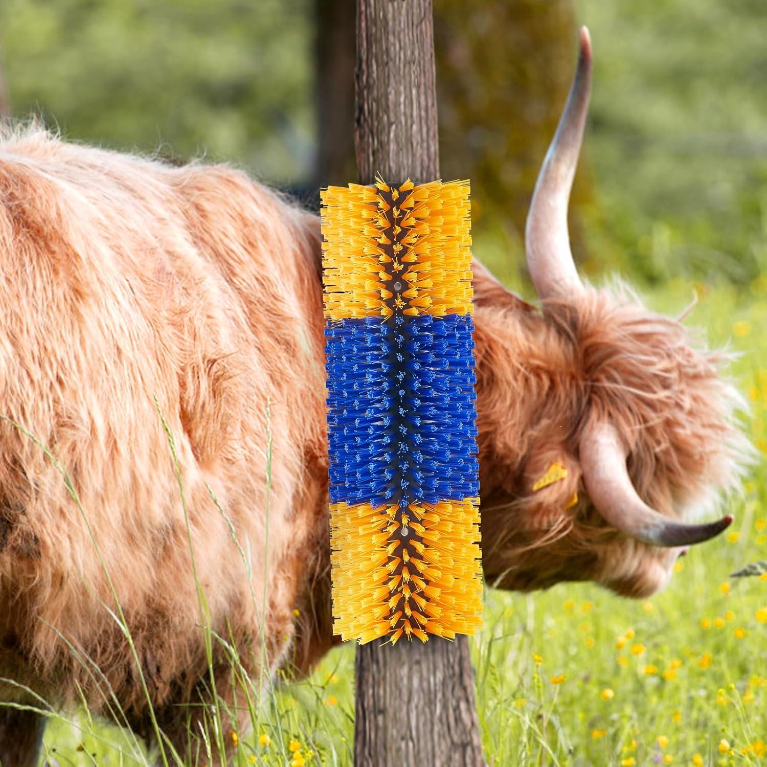 Easy to Install and Secure: The cow scratching post brush comes with two sets of mounting screws for easy setup in barns, stalls, or outdoor enclosures. It stays firmly in place, even with large animals using it.