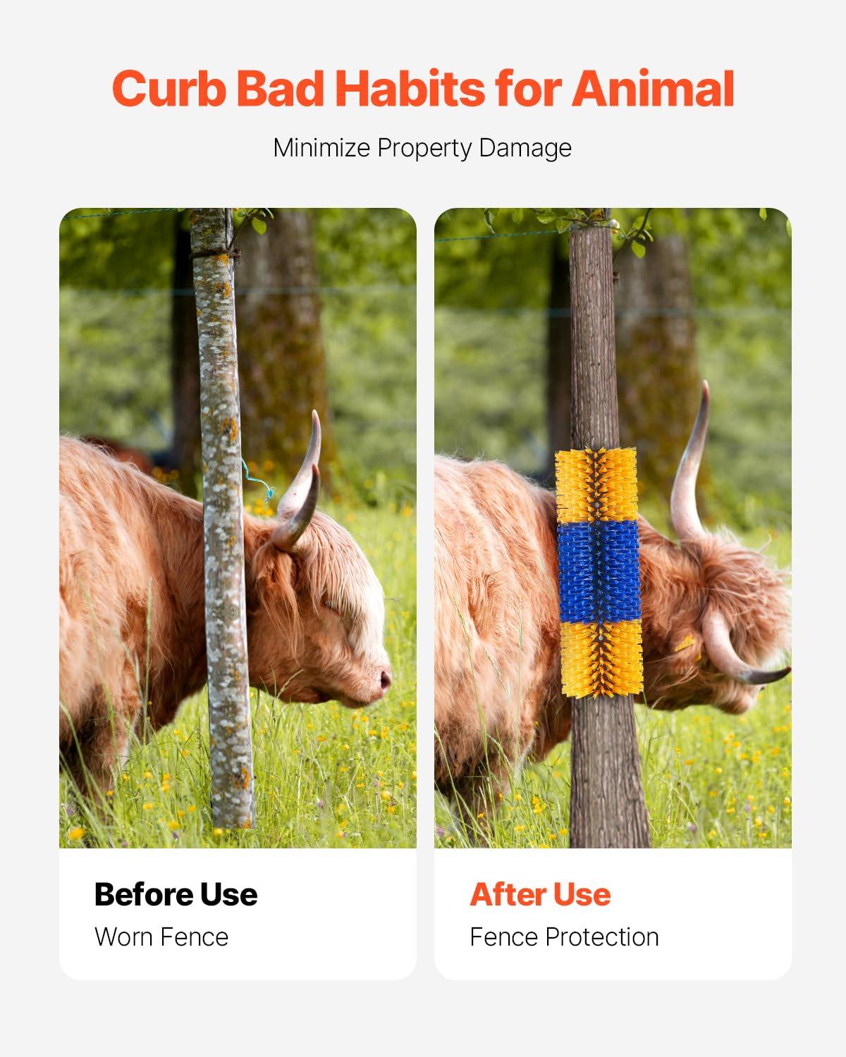 VEVOR Livestock Scratching Brush, 2 Pcs Horse Brush with 4 Screws, 17.1 x 7.5 in Cow Scratcher, for Back Itch Relief & Keep Cleaning, Grooming & Scratching Post Brush for Horse, Pig, Cattle Supplies(4PC)