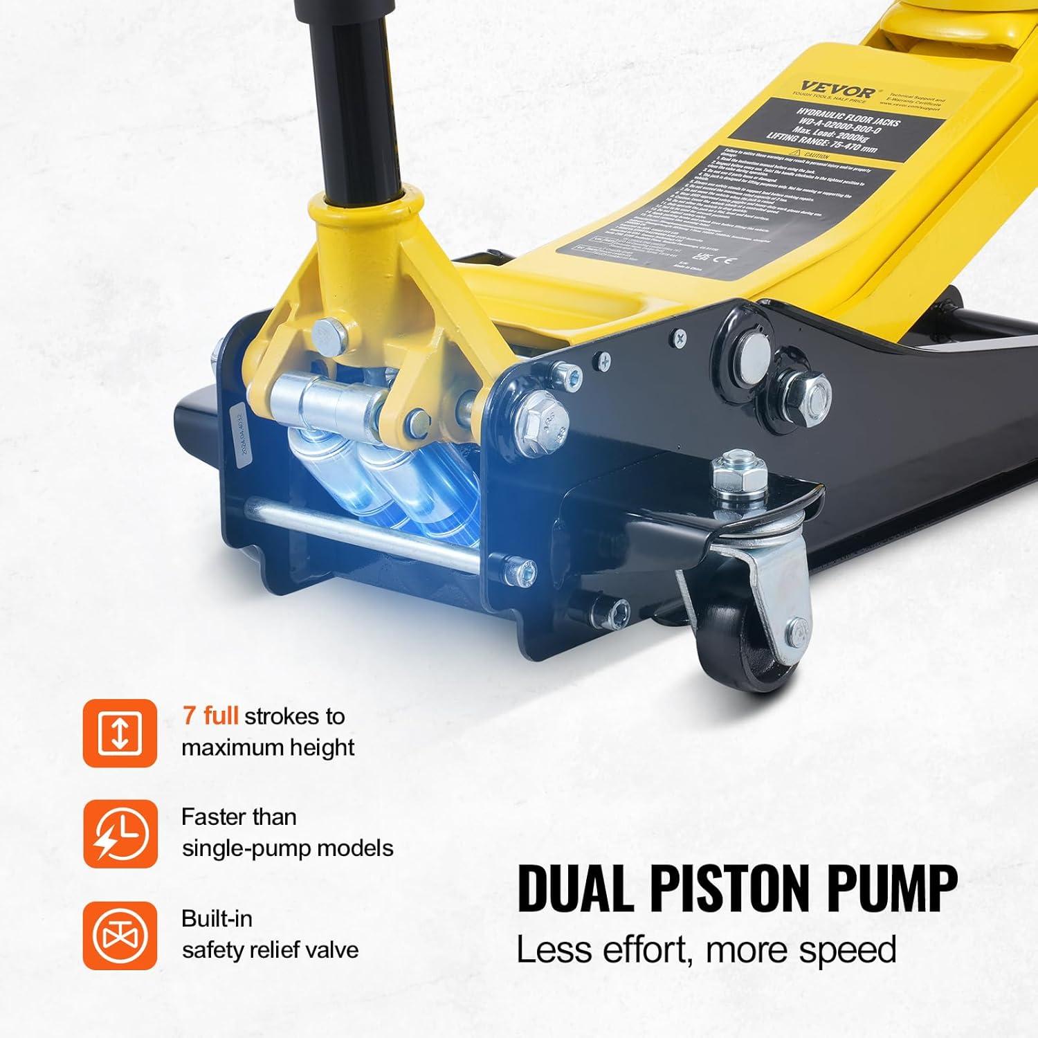 imageVEVOR Low Profile Floor Jack 2 Ton 4400 lbs Heavy Duty Iron Hydraulic Racing Floor Jack Hydraulic Car Jack Dual Piston Quick Lift Pump 3quot185quot Height Lifting Range Yellow2T Dual Pump