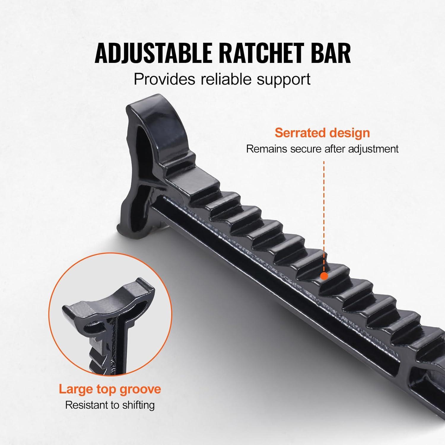 Lift Capacity and Height: Easily lifts up to 2 tons / 4409 lbs, with a minimum lift height of 4.6 inches / 117 mm and a maximum lift height of 12.8 inches / 325 mm, suitable for sports cars, family sedans, and light SUVs. Gently rotate the jack handle counterclockwise to lower the vehicle smoothly. The low profile floor jack stands are adjustable from 10.4 to 16.7 inches / 265 to 423 mm, making it convenient for tasks such as tire changes, brake system inspections/repairs, and suspension work.