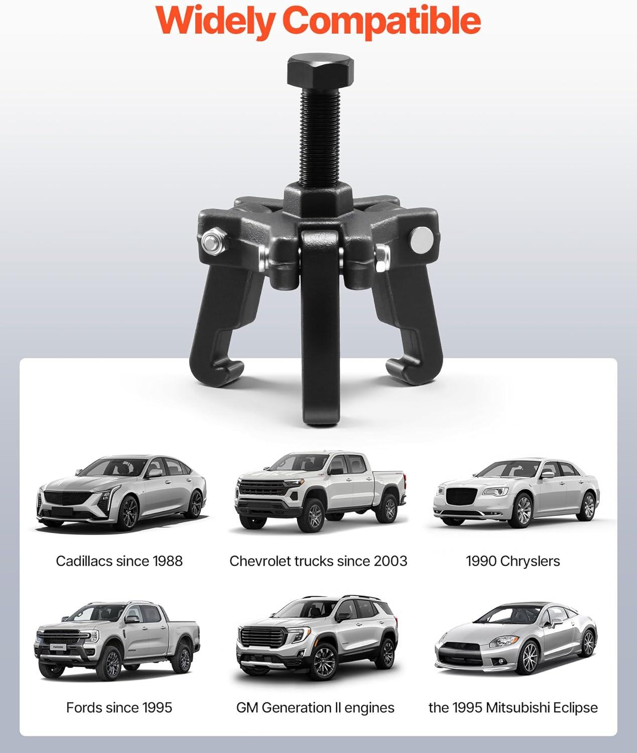 Wide Compatibility: Designed for various vehicle models, this harmonic balancer puller kit allows for efficient, damage-free removal without taking off the radiator