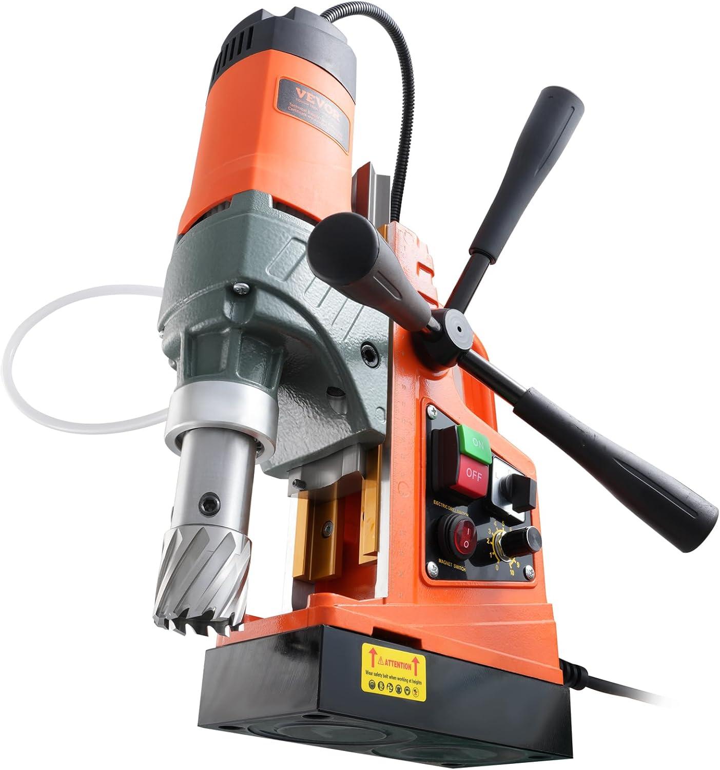 Top-level Magnet: Get ready for unstoppable power! Our electric mag drill generates exceptionally powerful driving force with its 1450W copper motor. It is capable of drilling into the toughest material at 0-800 RPM. Max. Boring Diameter (Coring Drill): Φ1.6 in / Φ40 mm; Max. Coring Depth: 2 in / 50 mm