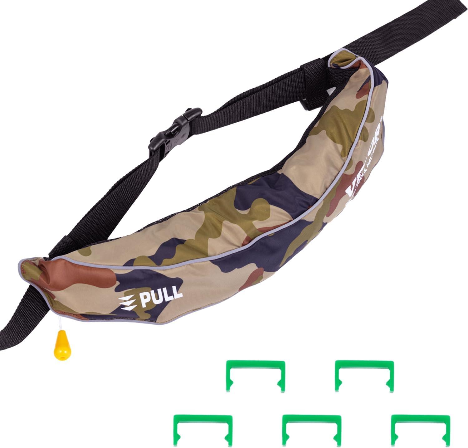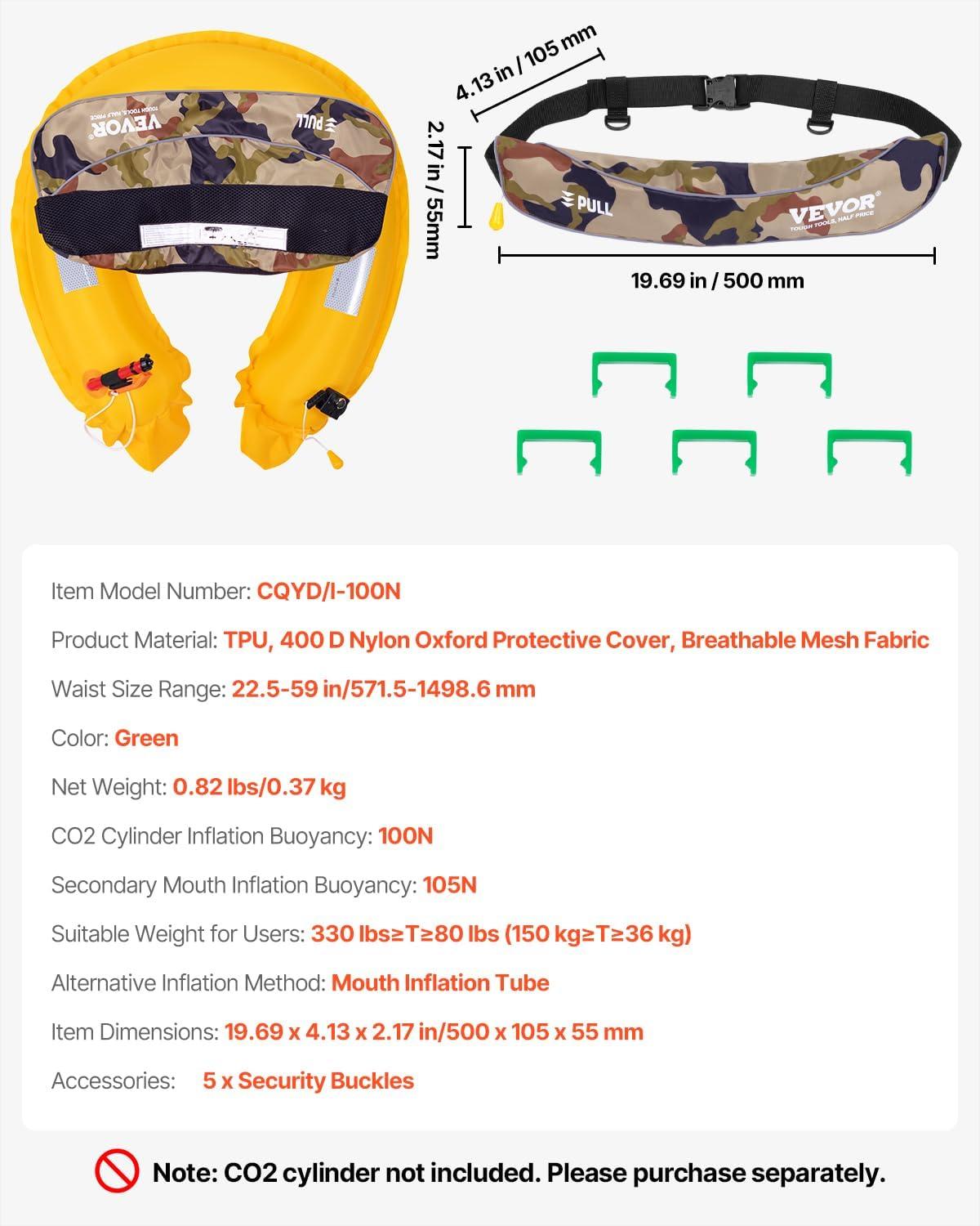 VEVOR Manual Inflatable Belt Pack for Adults, 105N Buoyancy, Over 80 Pounds and Up to 59 in Waist Adjustable, Inflatable PFD Waist for SUP Paddelboarding, Kayaking (CO2 Cylinder Not Included)(Green)