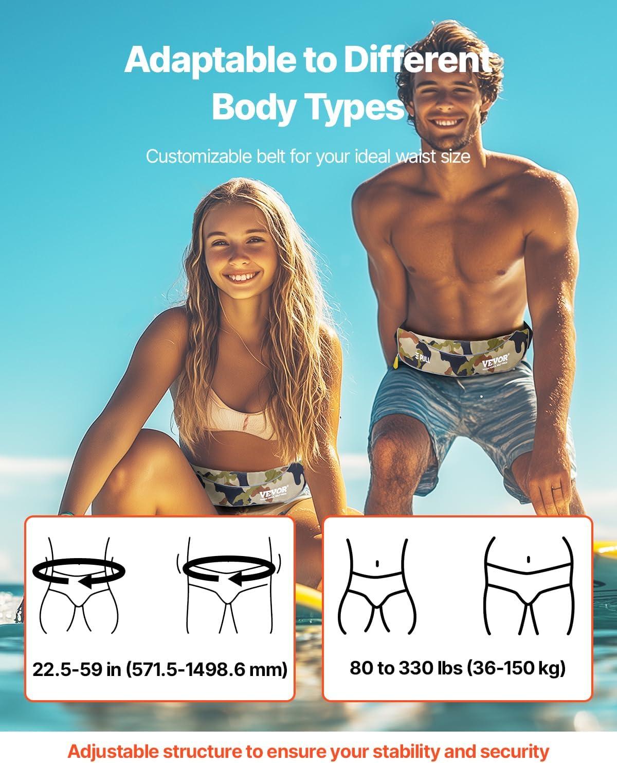 VEVOR Manual Inflatable Belt Pack for Adults, 105N Buoyancy, Over 80 Pounds and Up to 59 in Waist Adjustable, Inflatable PFD Waist for SUP Paddelboarding, Kayaking (CO2 Cylinder Not Included)(Gray)