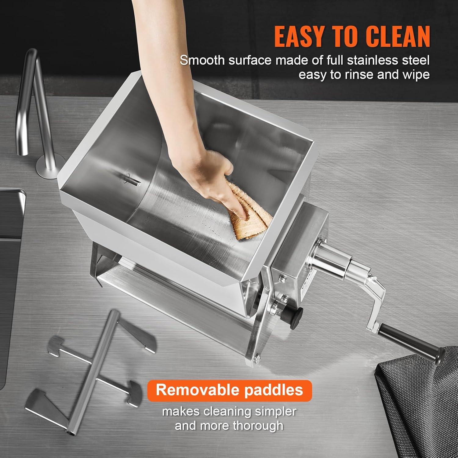 VEVOR Manual Meat Mixer, 15 Pound Capacity Tank Meat Processing Equipment, Stainless Steel Meat Mixer, Sausage Mixer Machine with Lid and Handle, Ground Beef Hand Mixer, Silver(BX-30)