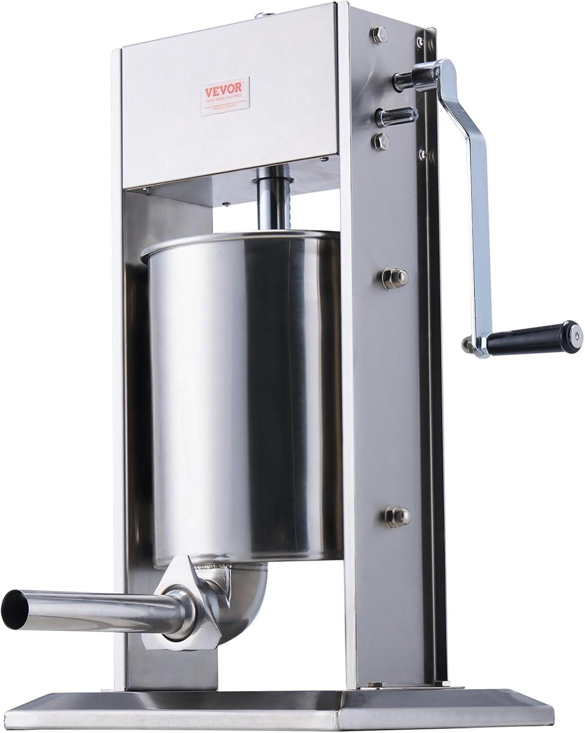 VEVOR Manual Sausage Stuffer, 2 L / 5 LBS Vertical Sausage Machine with G-type Clamp, Food-Grade 304 Stainless Steel Barrel with 2 Stuffing Tubes, for Home Kitchen Restaurant Commercial(10 L / 22 LBS)