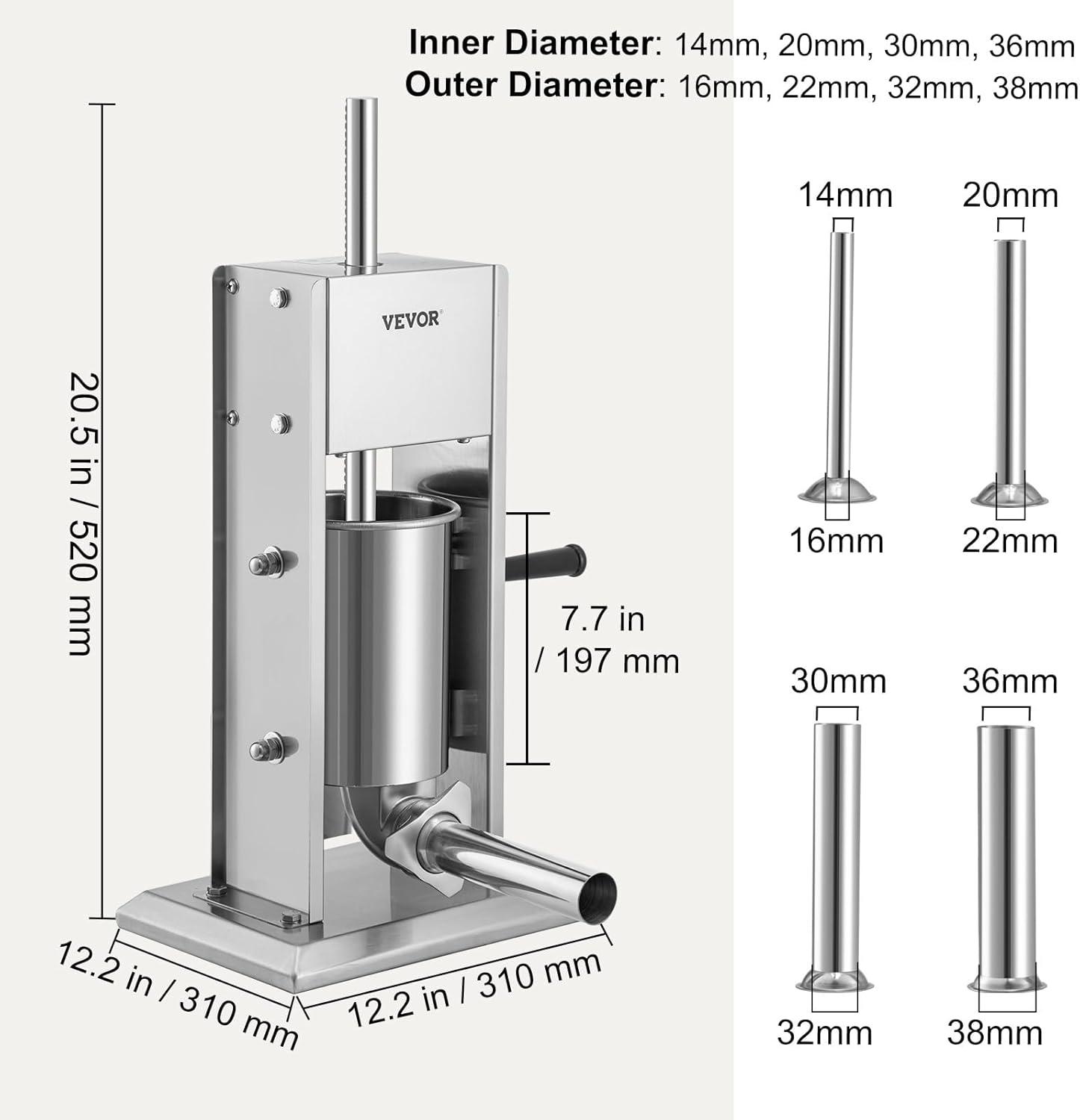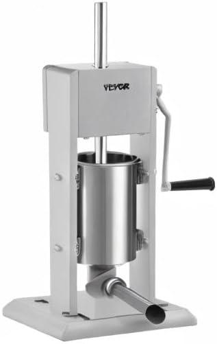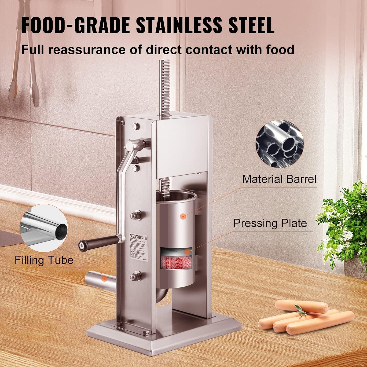 VEVOR Manual Sausage Stuffer, 2 L / 5 LBS Vertical Sausage Machine with G-type Clamp, Food-Grade 304 Stainless Steel Barrel with 2 Stuffing Tubes, for Home Kitchen Restaurant Commercial(7 L / 15 LBS)