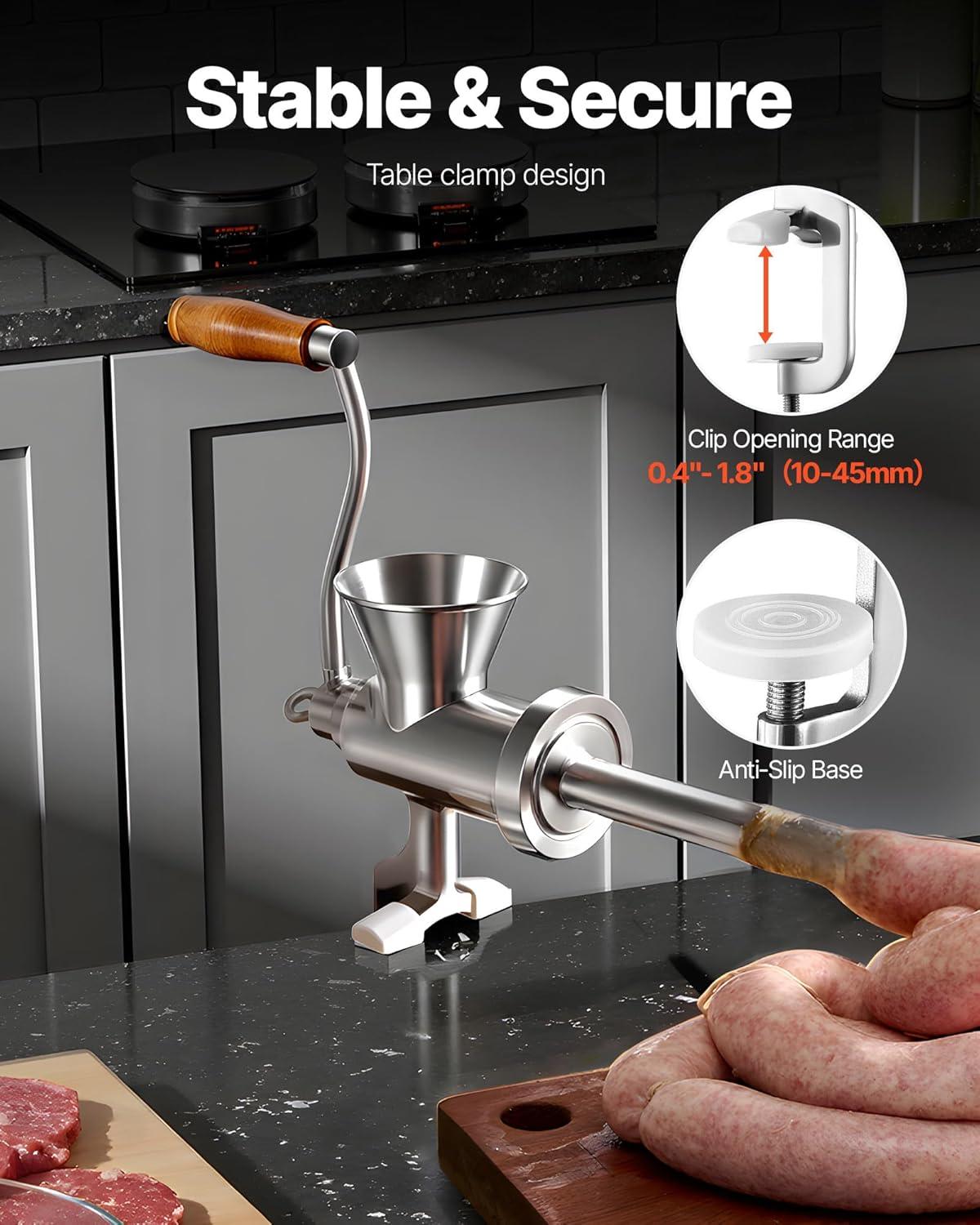 imageVEVOR Manual Stainless Steel Meat Grinder 18quot Clamp 2 Grinding Plates Sausage Stuffer Ideal for Home Kitchen Restaurant Butchers Shop5Suction Cup