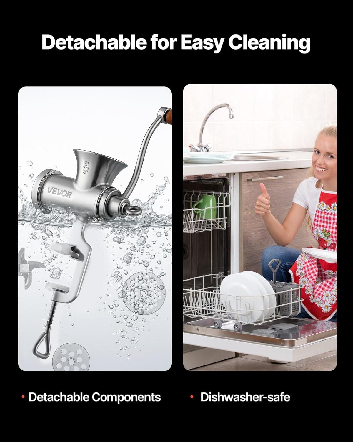 Food-Grade Stainless Steel: All parts of our manual meat grinder are made of food-grade stainless steel, which provides excellent rust and corrosion resistance and contributes to its stylish appearance. With this high-quality material, this machine offers you a healthy and secure method to ensure your food remains hygienic while cutting down maintenance costs.