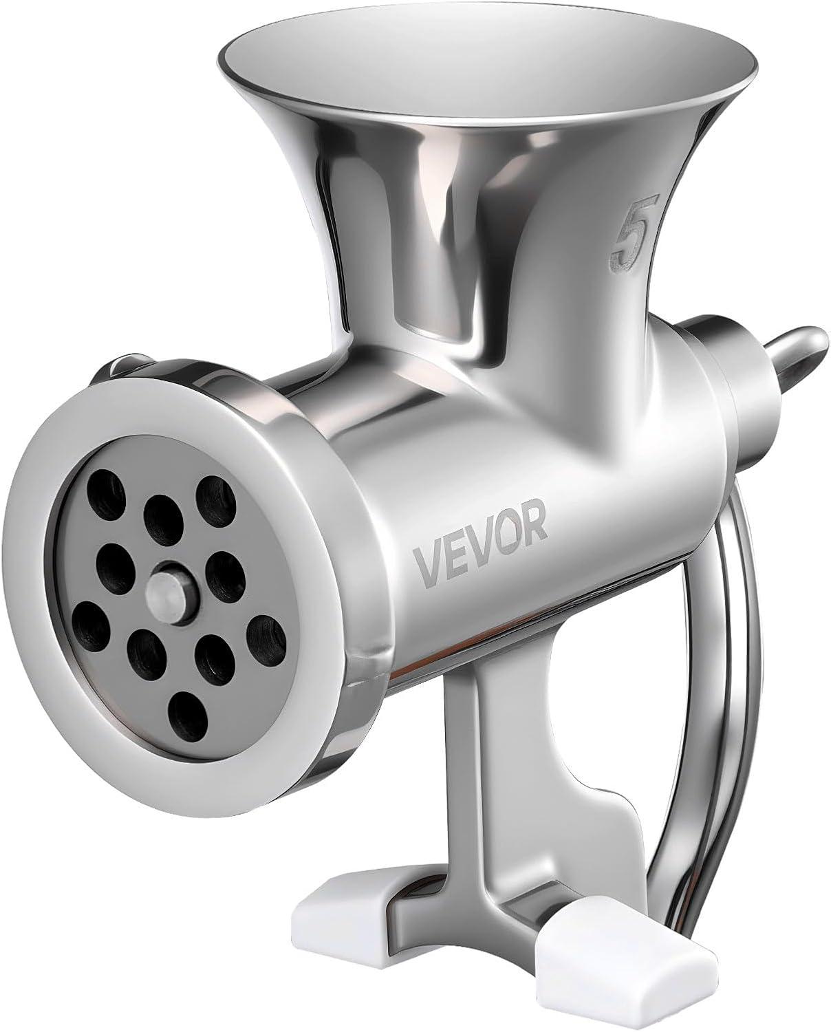 VEVOR Manual Stainless Steel Meat Grinder, 1.8″ Clamp, 2 Grinding Plates, Sausage Stuffer, Ideal for Home Kitchen Restaurant Butcher’s Shop(#5-Suction Cup)