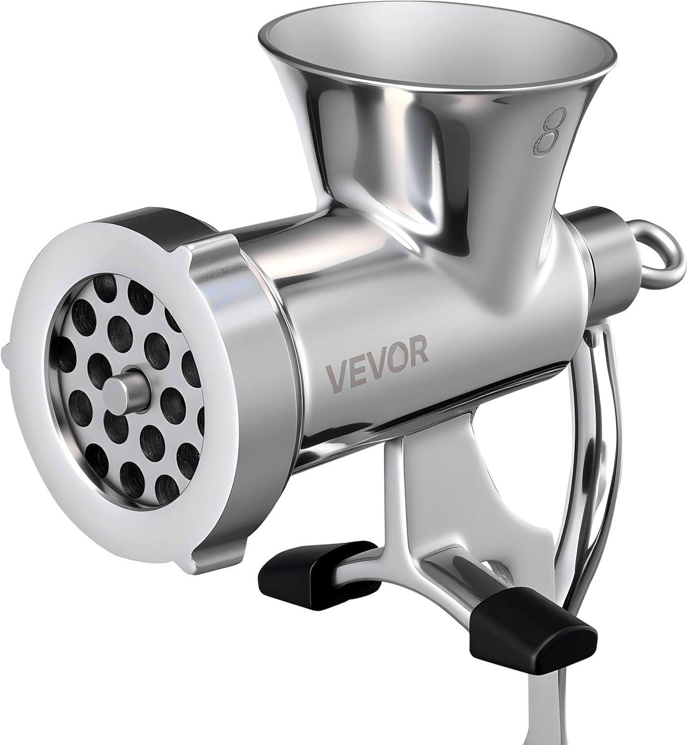 VEVOR Manual Stainless Steel Meat Grinder, 1.8″ Clamp, 2 Grinding Plates, Sausage Stuffer, Ideal for Home Kitchen Restaurant Butcher’s Shop(#8-Suction Cup)