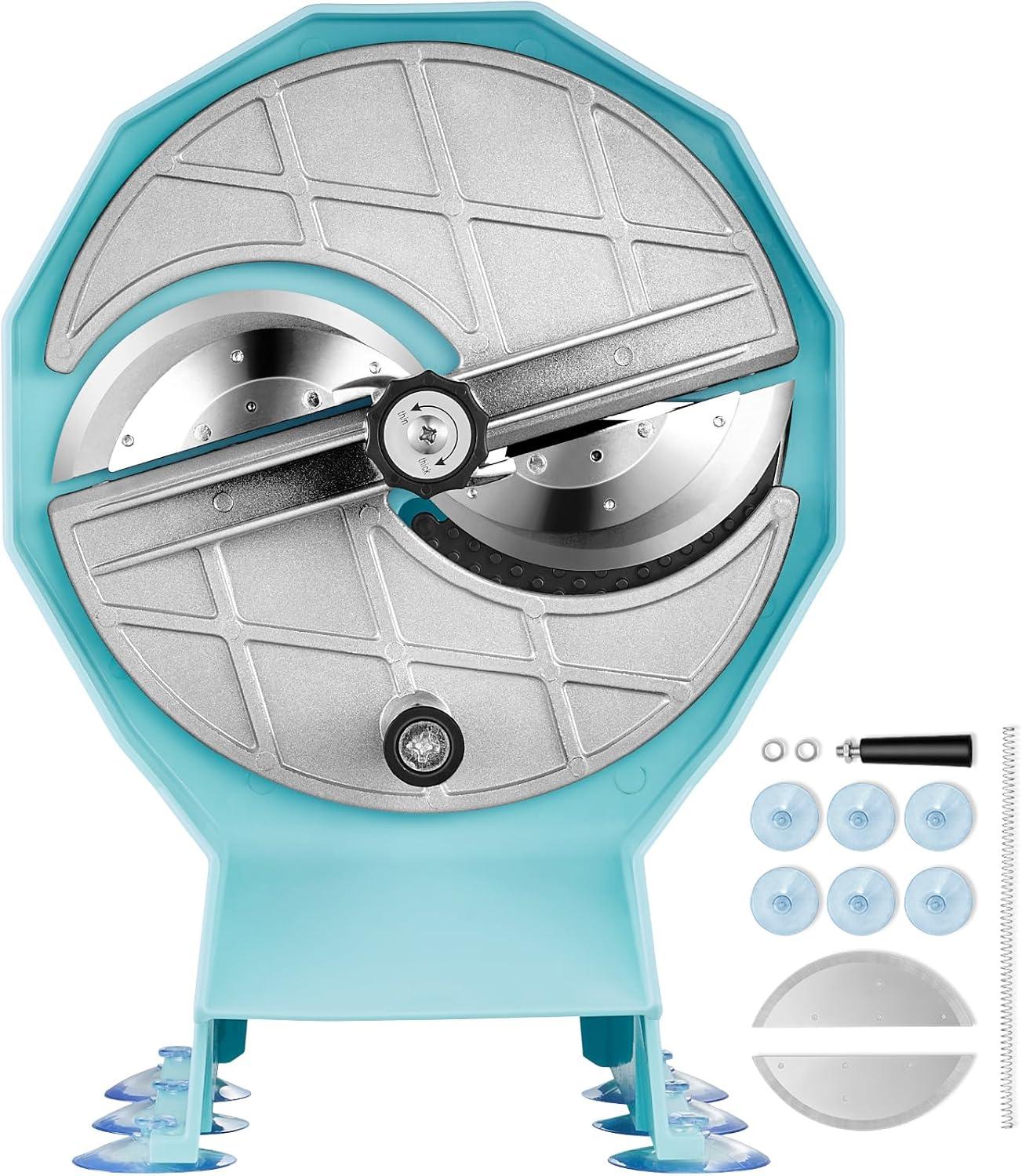 VEVOR Manual Vegetable Fruit Slicer, 0-0.5″/0-12mm Thickness Adjustable Commercial Slicer Machine, Stainless Steel Food Cutter Slicing Machine with 2 Spare Blades, for Potato, Cucumber, Lemon, Tomato(Manual)