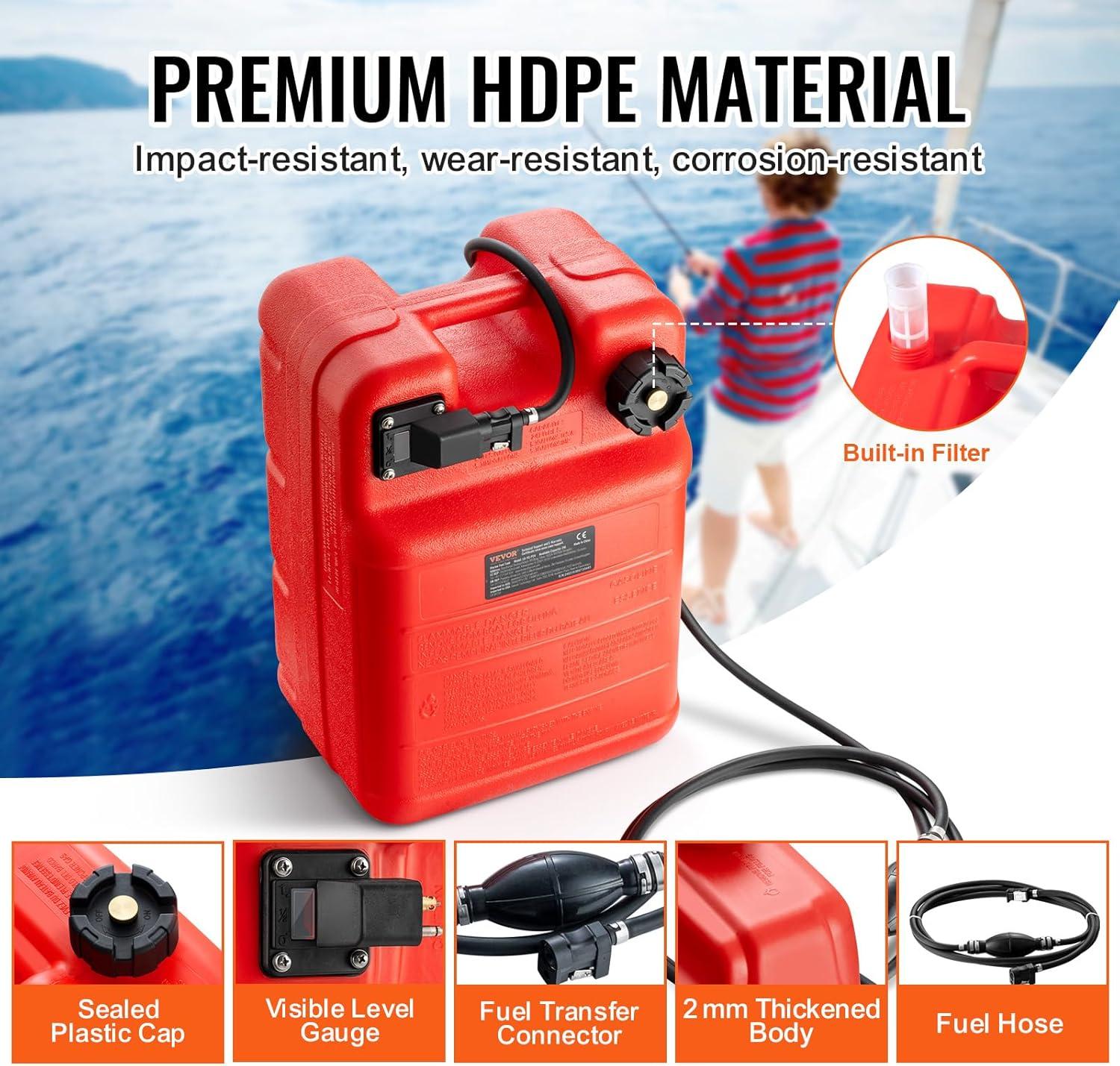 Strong Compatibility: The boat tank comes with a 9.8 ft/3 m long fuel hose with a 0.3″/8 mm inner diameter, compatible with most marine tank interfaces. It's the perfect match for your outboard motor adventures, whether you're on a fishing boat, or chilling on a deck boat.
