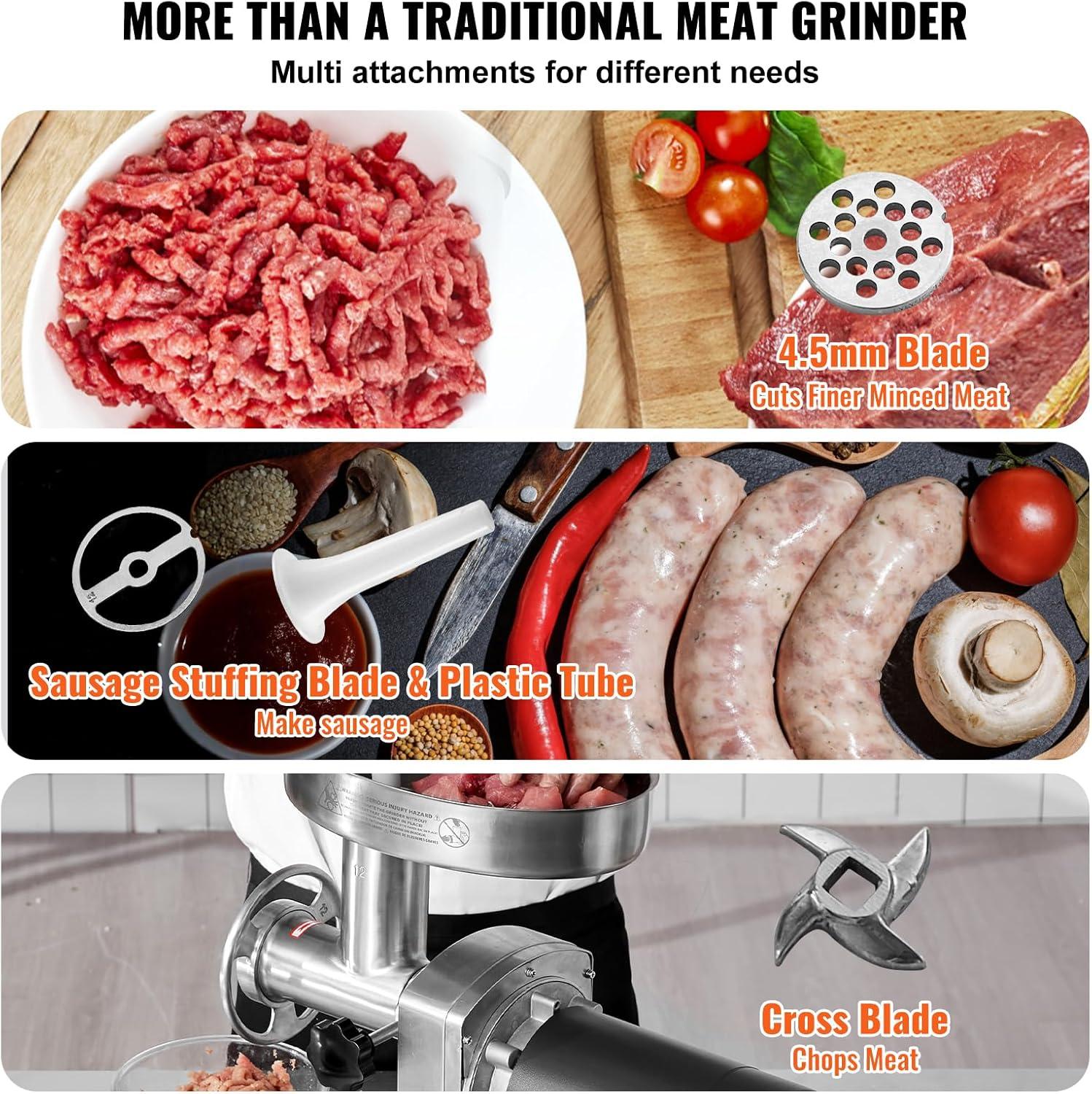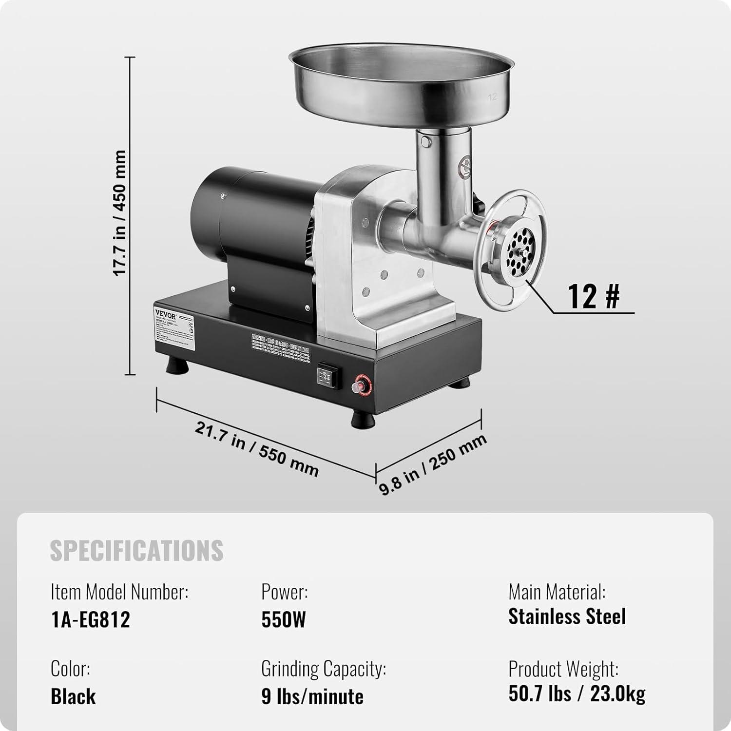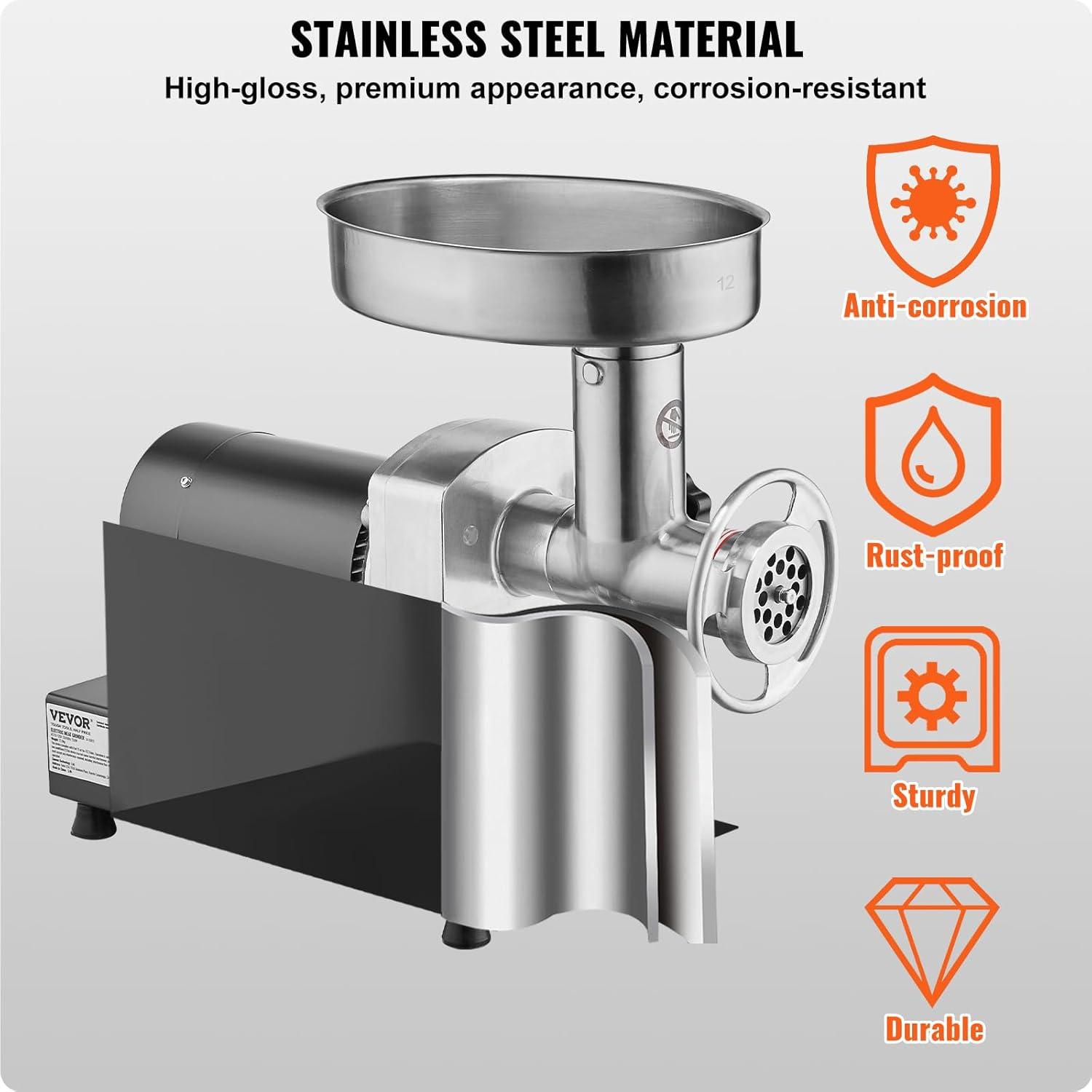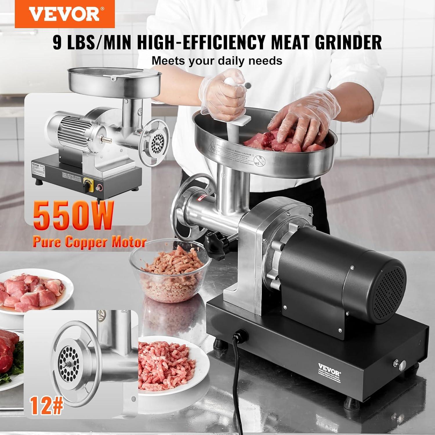 VEVOR Meat Grinder, 0.75 HP 550W, 9 Lbs/Min Electric Meat Grinders with Blade, Grinding Plate, Sausage Maker, Stainless Steel Commercial Meat Mincer for Kitchen Restaurant Butcher Store, ETL Listed(#12 540LB/H)