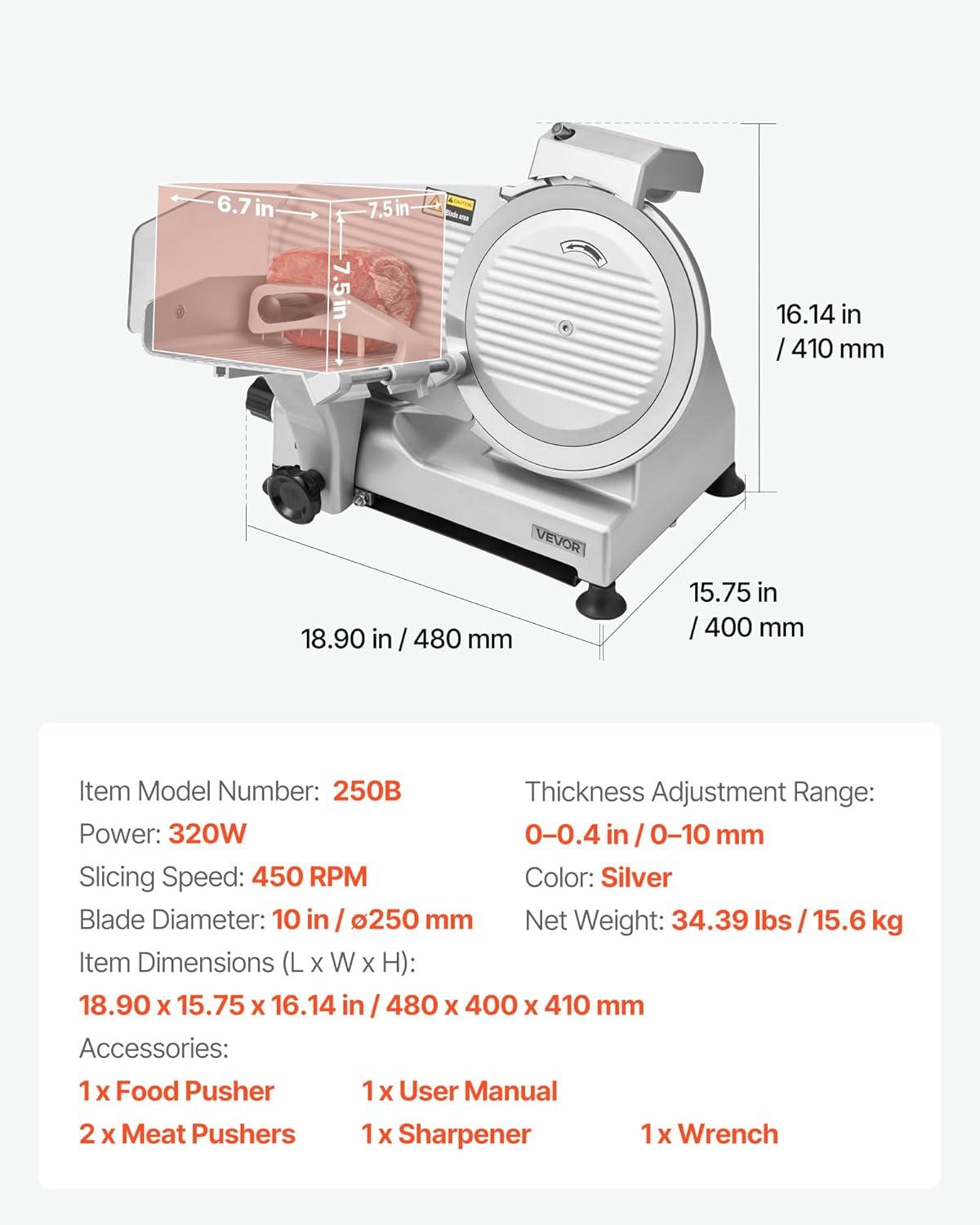 Efficient Meat Cutting: This high-end meat slicer is equipped with a 190 mm (7.5 in) durable, sharp blade and powered by a 200W motor. With slicing speeds of 70-100 RPM, it ensures smooth, even cuts without jamming