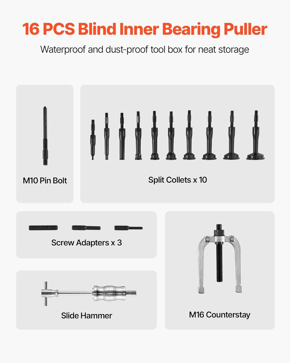 VEVOR Mercruiser Alpha Bravo Alignment Gimbal Bearing Puller Set Bellow Expander Tools(Blind Hole Bearing Puller Set)