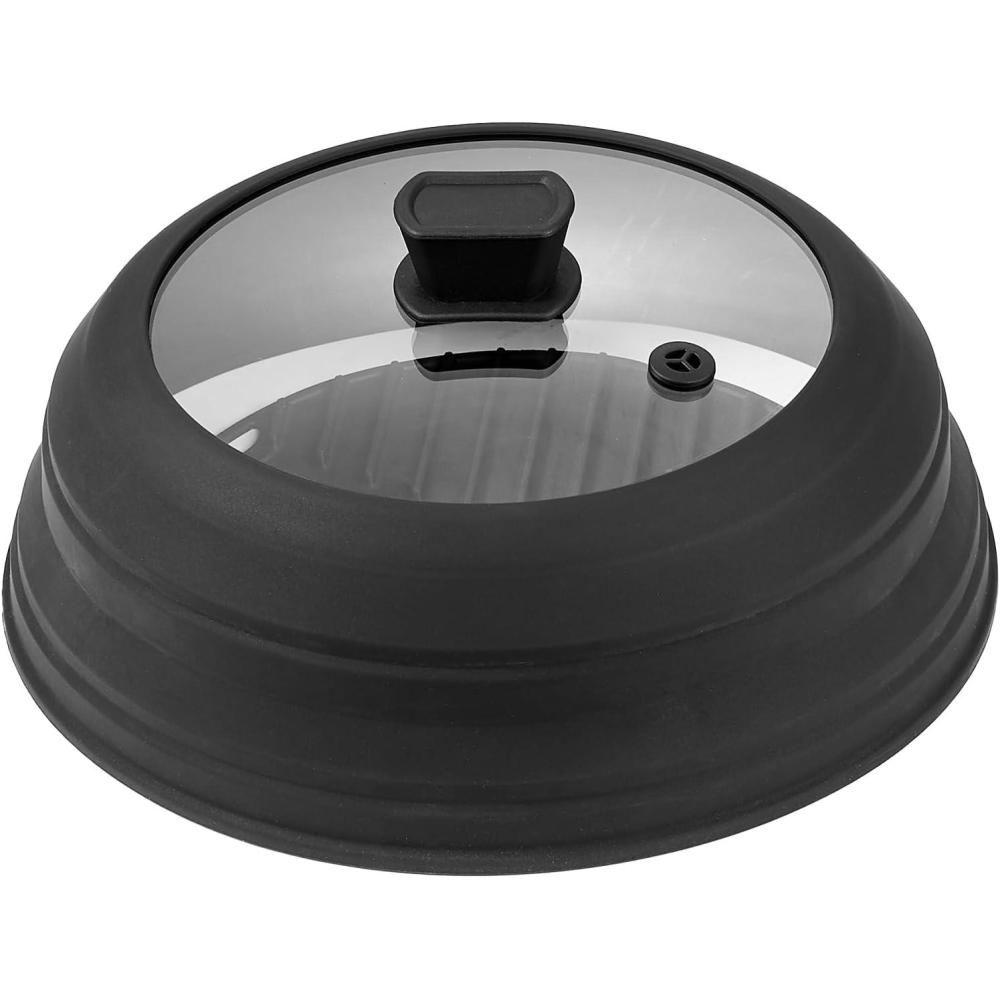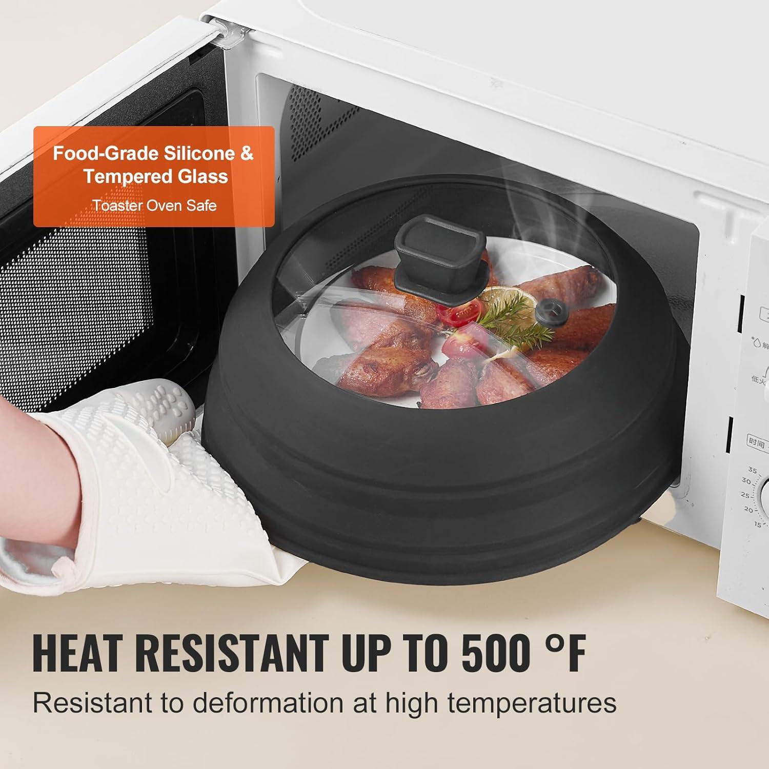 VEVOR Microwave Splatter Cover & Mat, 10.8″ Collapsible Microwave Lid for Food, 500°F Heat-Resistant Silicone & Tempered Glass Splatter Guard for Plate Dish, Multi-Purpose Kitchen Gadget with Handle(1 Pack)