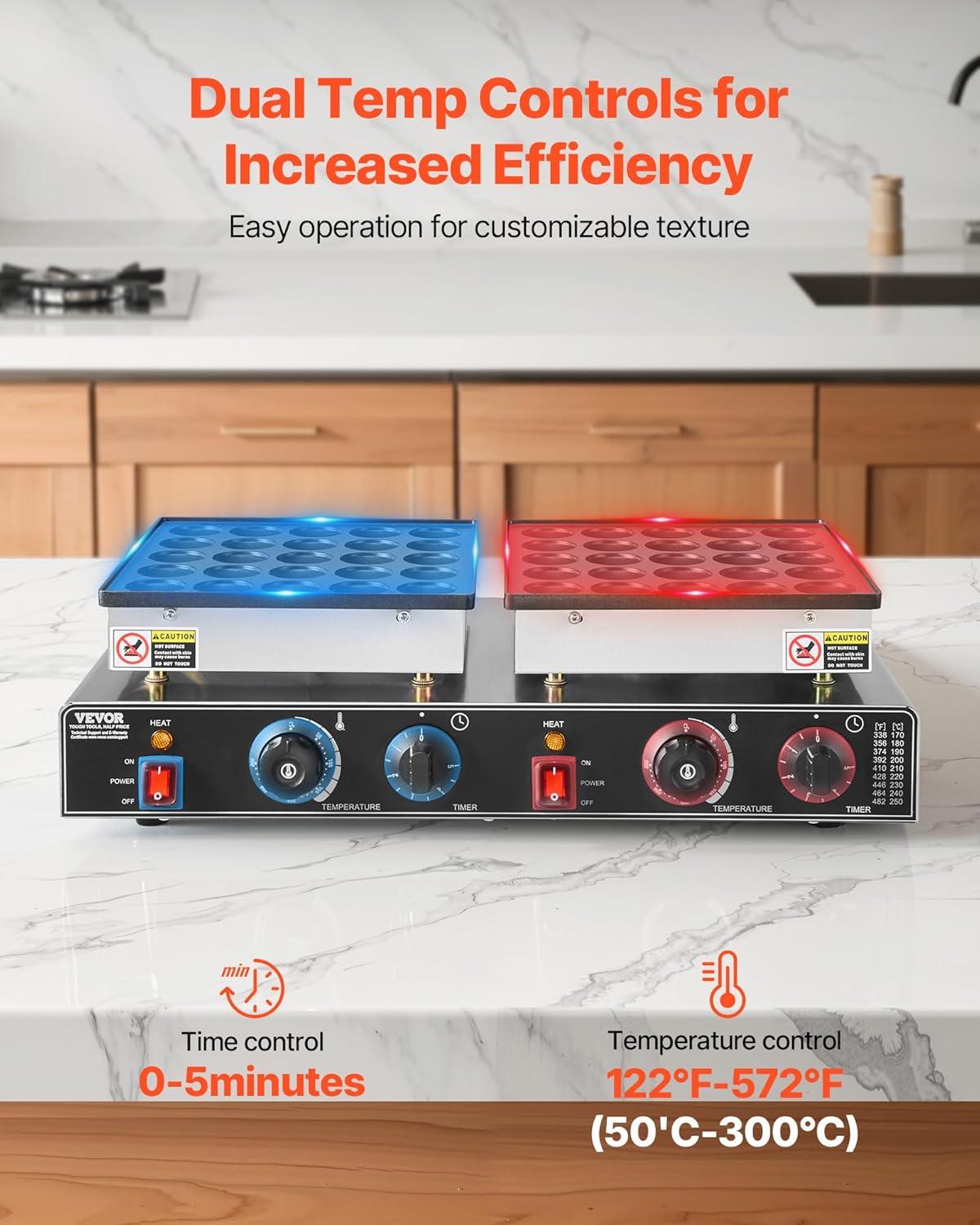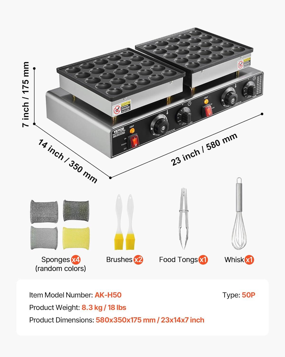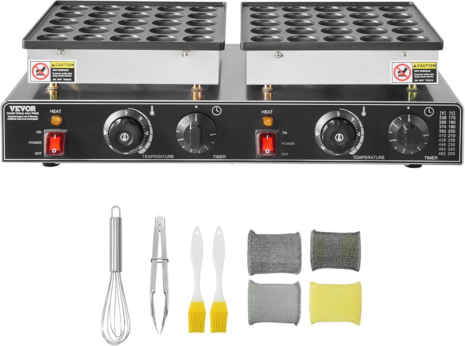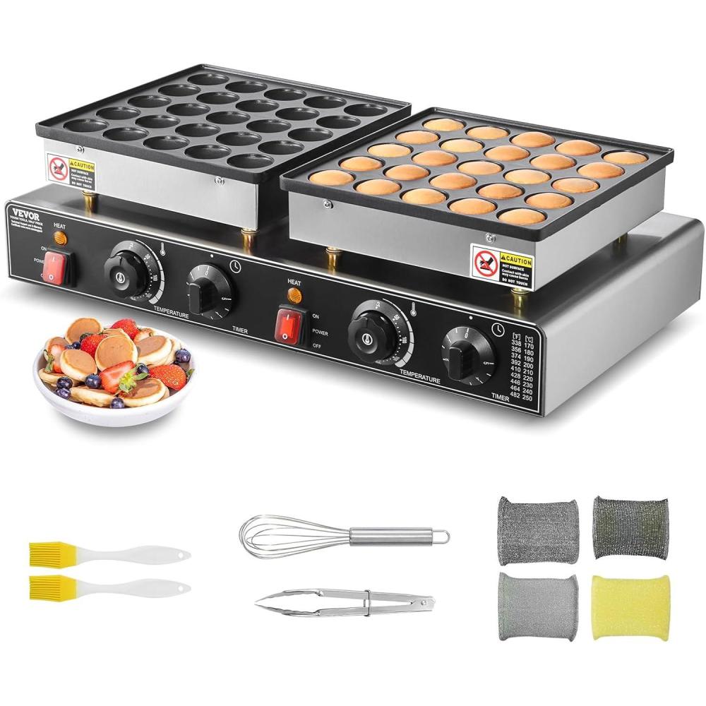 VEVOR Mini Dutch Pancake Maker, 25PCS 43mm Diameter Dorayaki Baker Machine, 1700W Commercial Electric Poffertjes Grill, Non-stick Stainless Steel, Temp & Time Control, for Home Kitchen Restaurant(50pcs(new))
