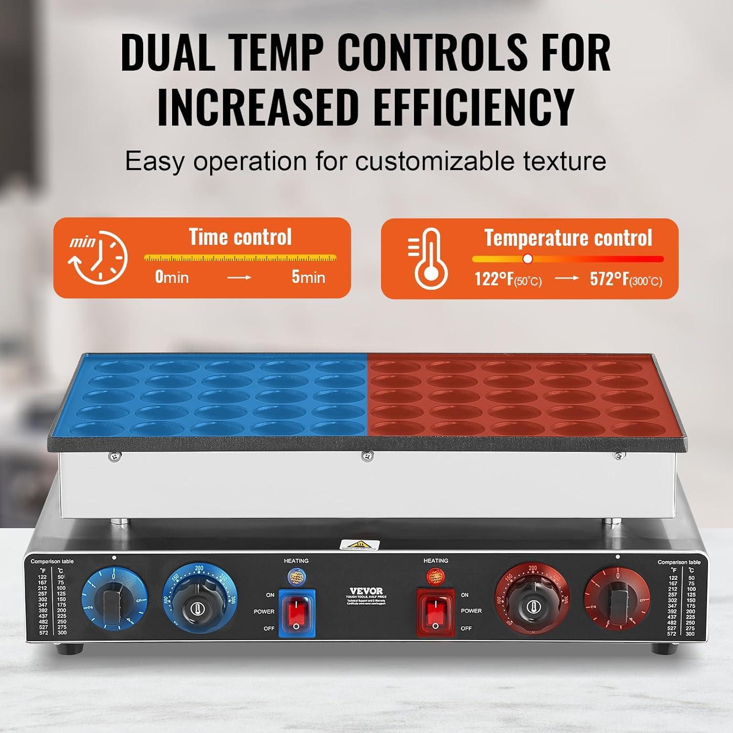 VEVOR Mini Pancake Maker, 25PCS 43mm Diameter Dutch Muffin Waffle Baker, Non-stick Stainless Steel Poffertjes Grill, Commercial Electric Dorayaki Machine, Temp & Time Control, Home Kitchen Restaurant(50pcs)