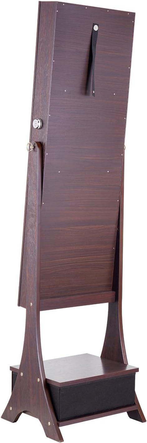 imageVEVOR Mirror Jewelry Cabinet 472Inch Tall Lockable Jewelry Armoire with FullLength Mirror WallDoor Mounted Organizer with LED Lights and Velvet Lining BrownBrown