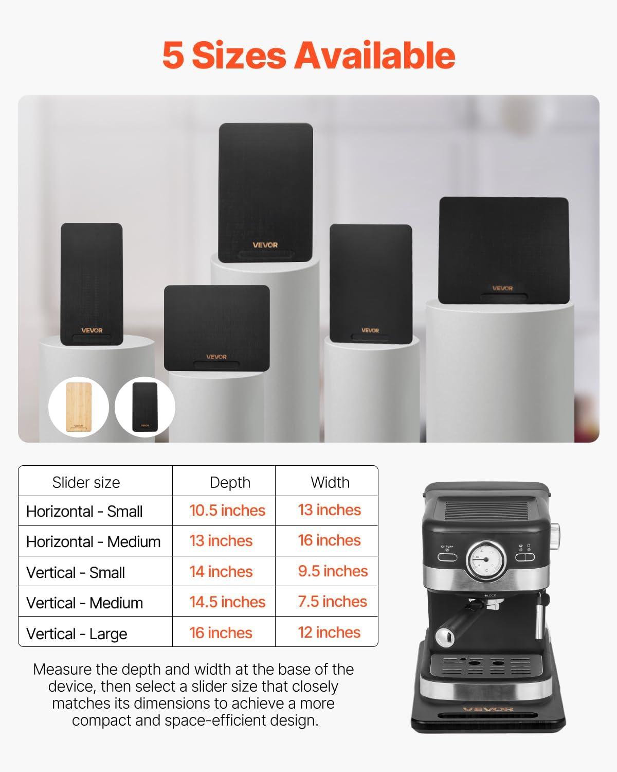 Natural Material: The sliding tray is made from natural material, odor-free and durable with a 0.7-inch thickness. It won’t warp or crack, ideal for frequent appliance adjustments in the kitchen.