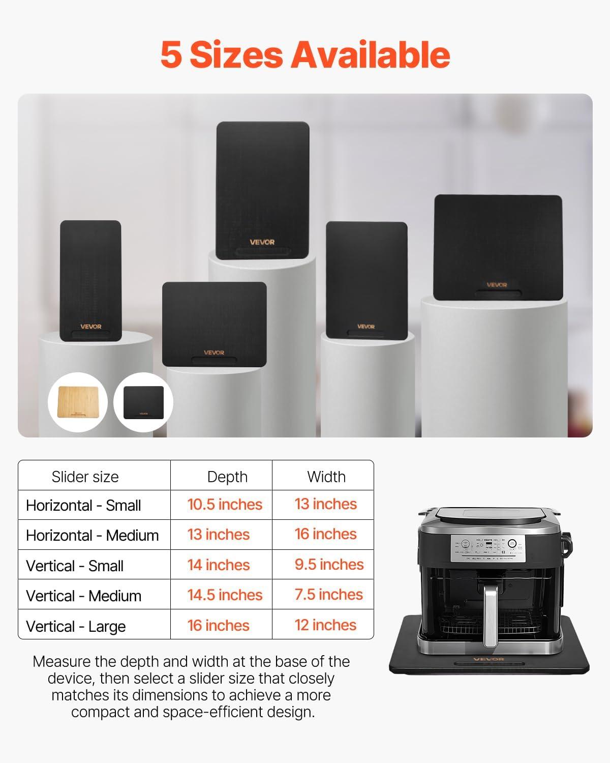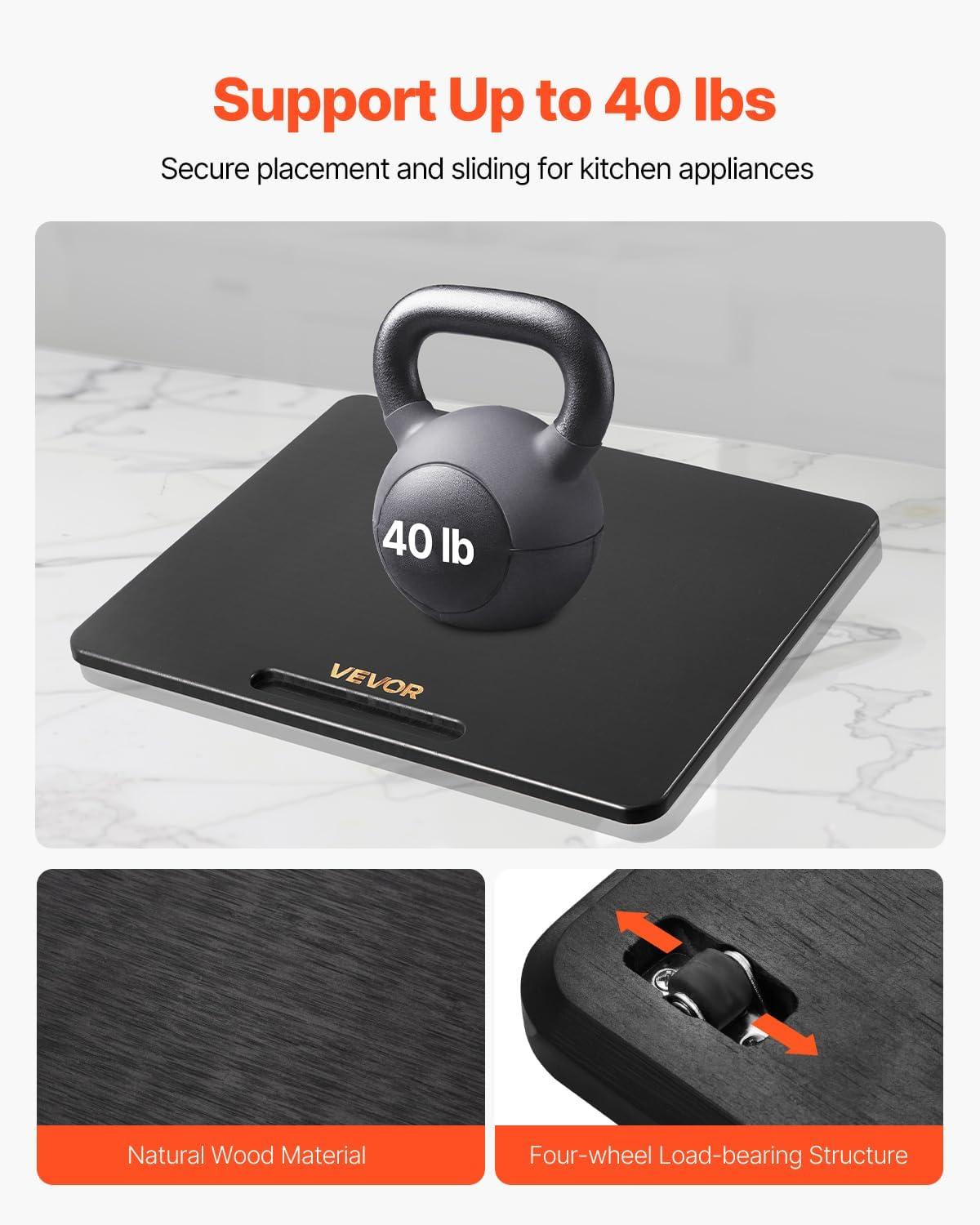 Natural Material: The sliding tray is made from natural material, odor-free and durable with a 0.7-inch thickness. It won’t warp or crack, ideal for frequent appliance adjustments in the kitchen.