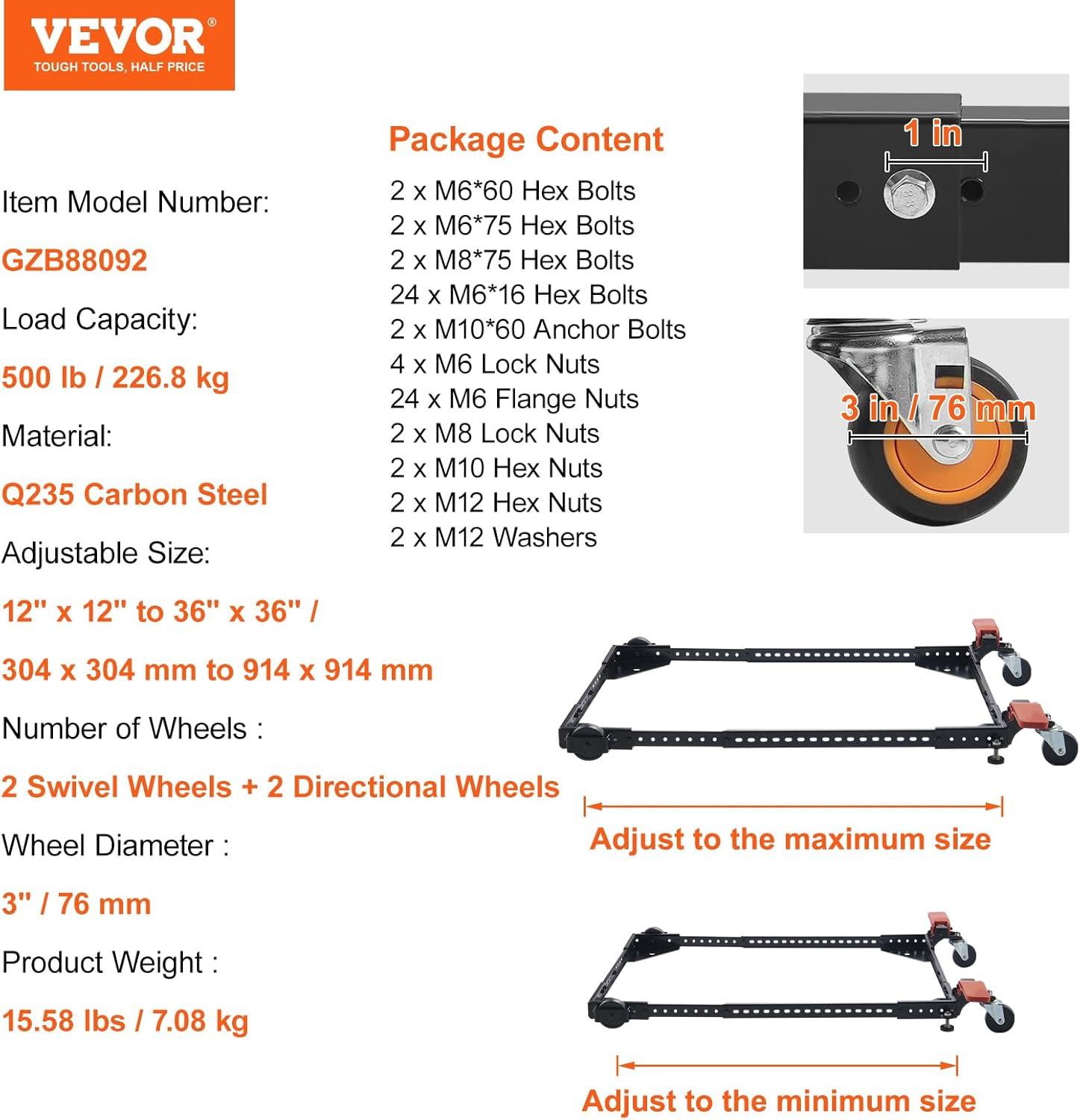 One Base Fits All Sizes: Whether you've got a teeny-tiny table saw or a massive washing machine, our adjustable rods have got your back. Customize the fit and make this heavy-duty mobile base your equipment's new best friend.