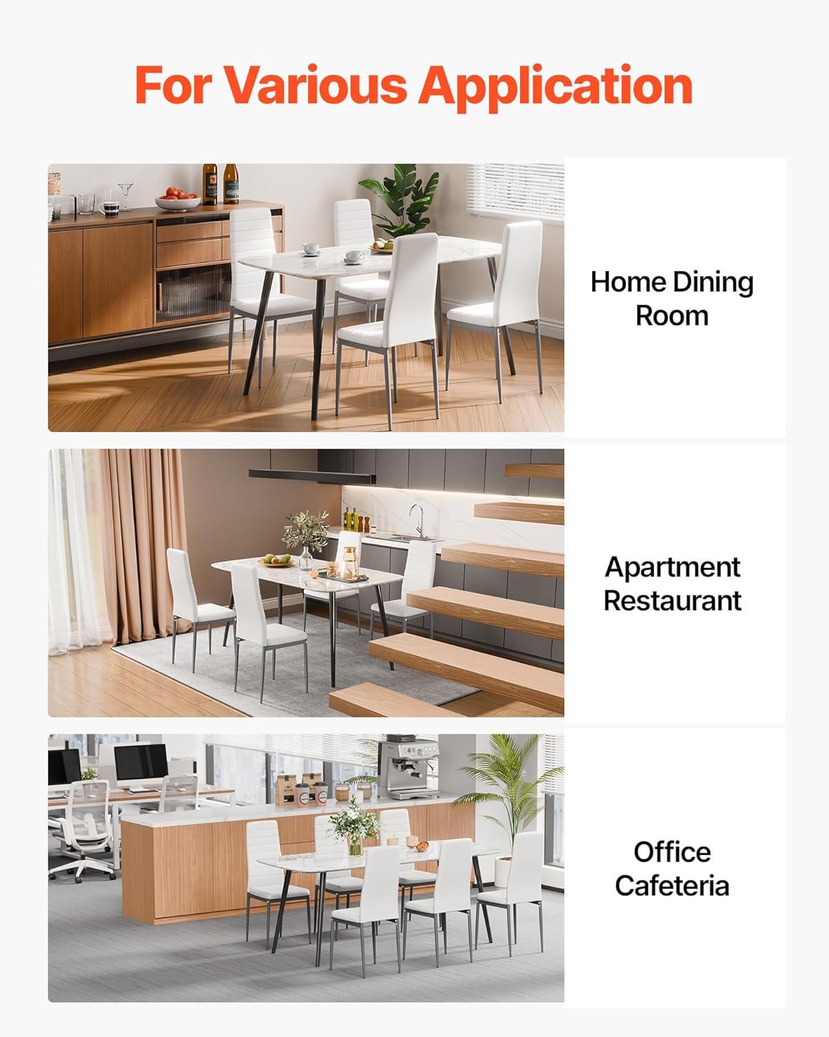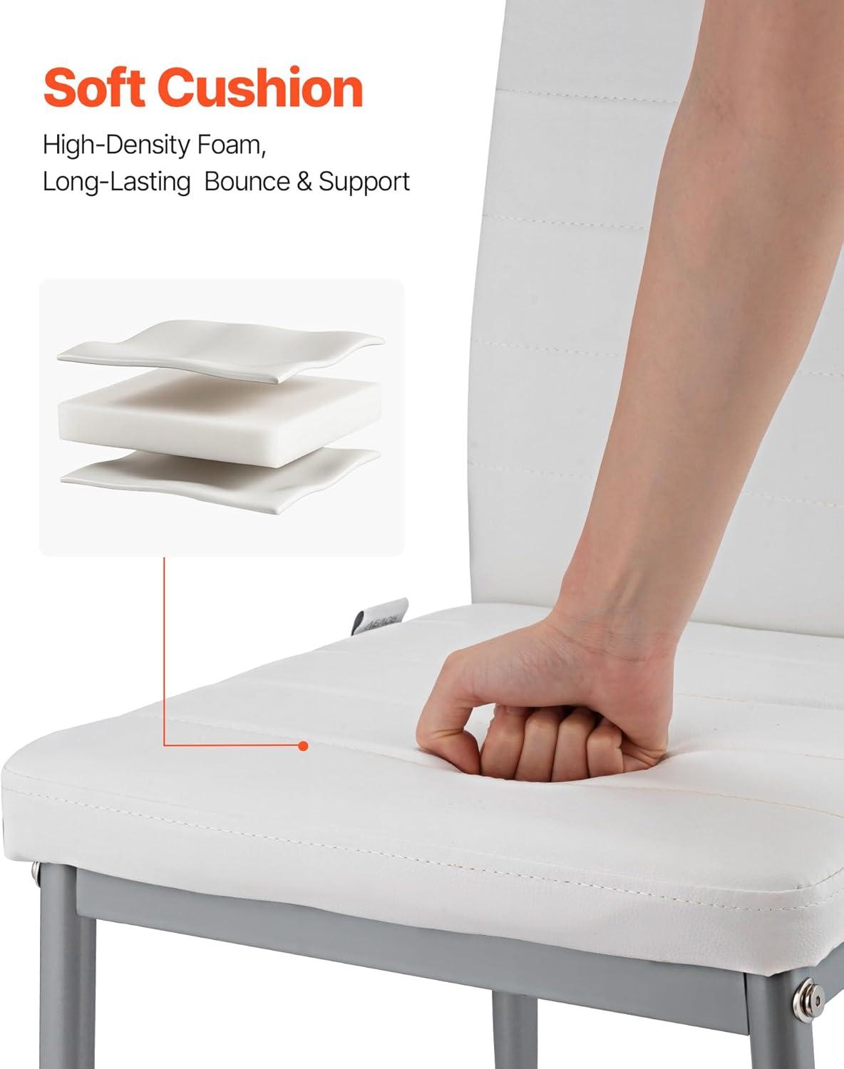 VEVOR Modern Dining Room Accent Chairs Set of 4, Upholstered Leather Side Chair for Living Room, Space-Saving Kitchen Chair with Thick Cushions and Metal Legs, White(Set of 6 (White))