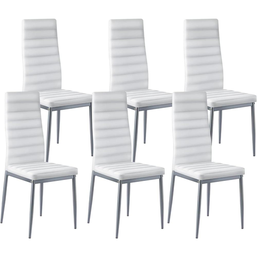 imageVEVOR Modern Dining Room Accent Chairs Set of 4 Upholstered Leather Side Chair for Living Room SpaceSaving Kitchen Chair with Thick Cushions and Metal Legs WhiteSet of 6 White
