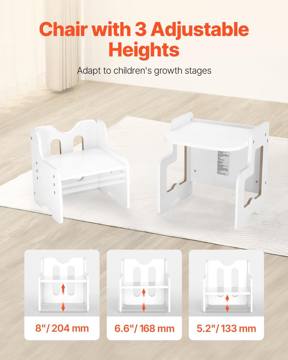 Easy Chalkboard Conversion: The toddler table and chair set can easily switch from a regular tabletop to a functional chalkboard, providing a space for your child’s creativity and learning.