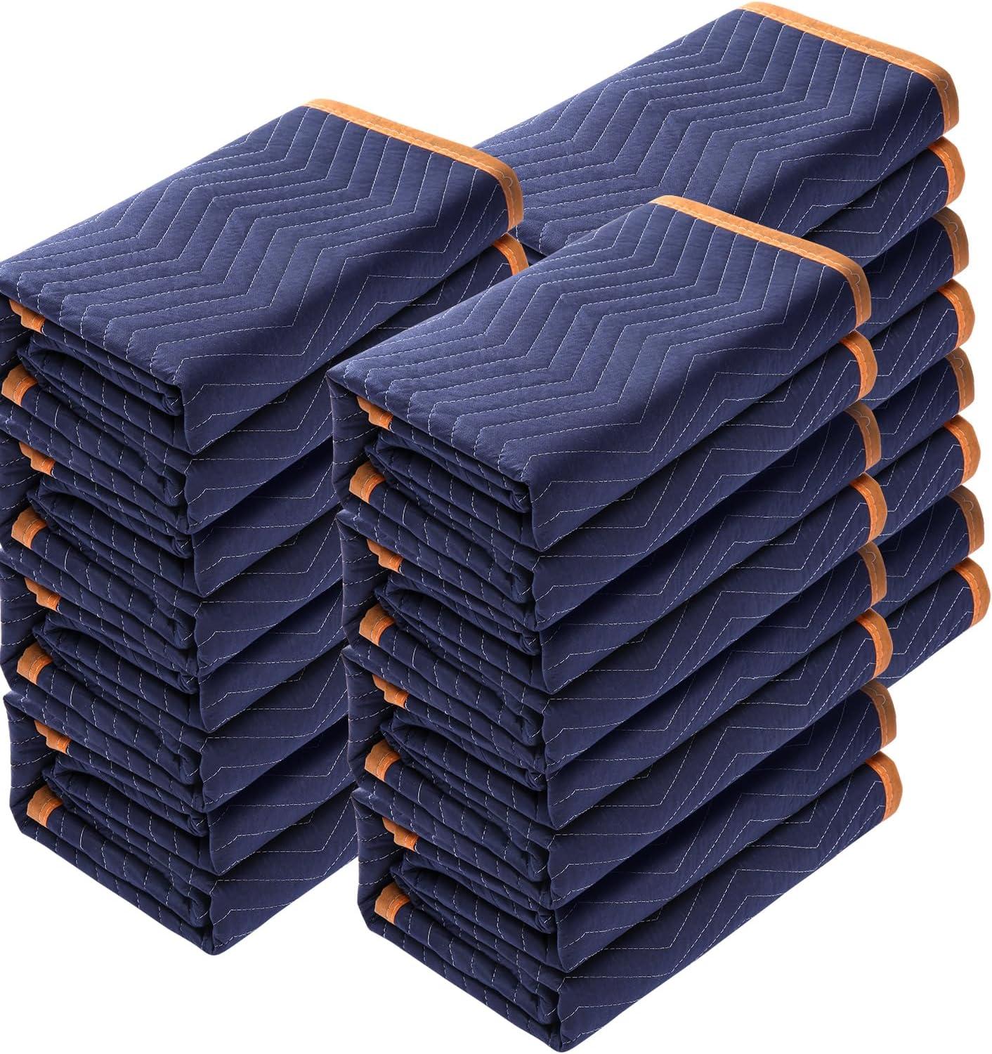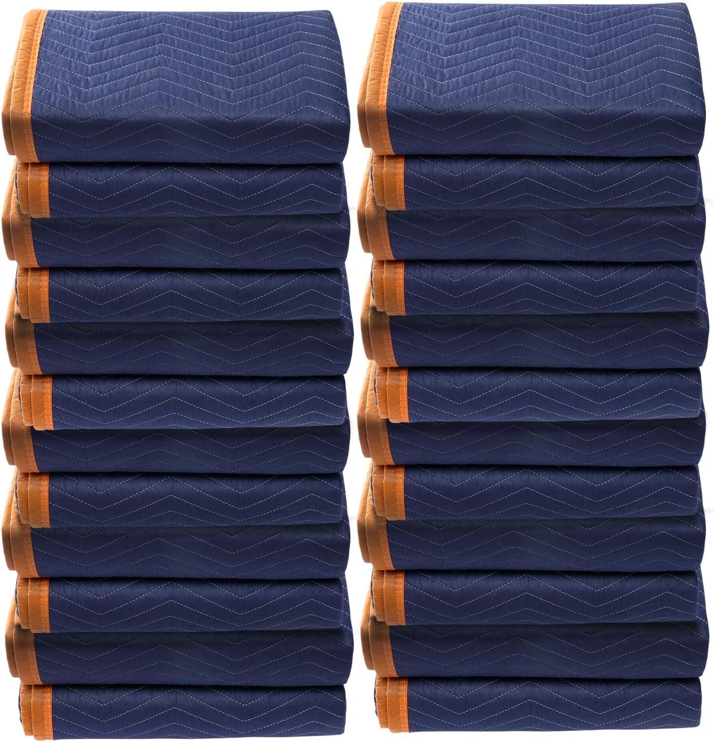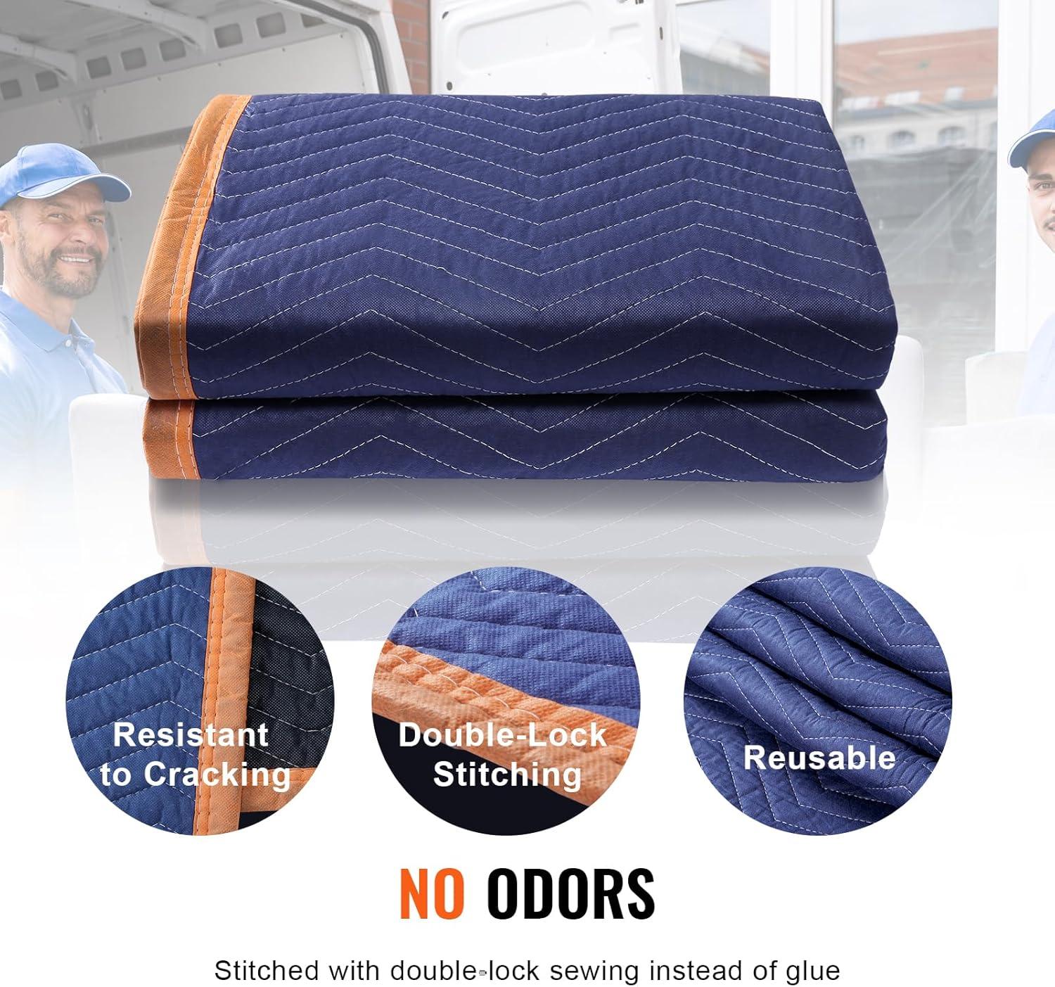 VEVOR Moving Blankets, 80″ x 72″, 35 lbs/dz Weight, 12 Packs, Professional Non-Woven & Recycled Cotton Packing Blanket, Heavy Duty Mover Pads for Protecting Furniture, Floors, Appliances, Blue/Orange(Black Side + Dark Blue Side + Orange Edges)