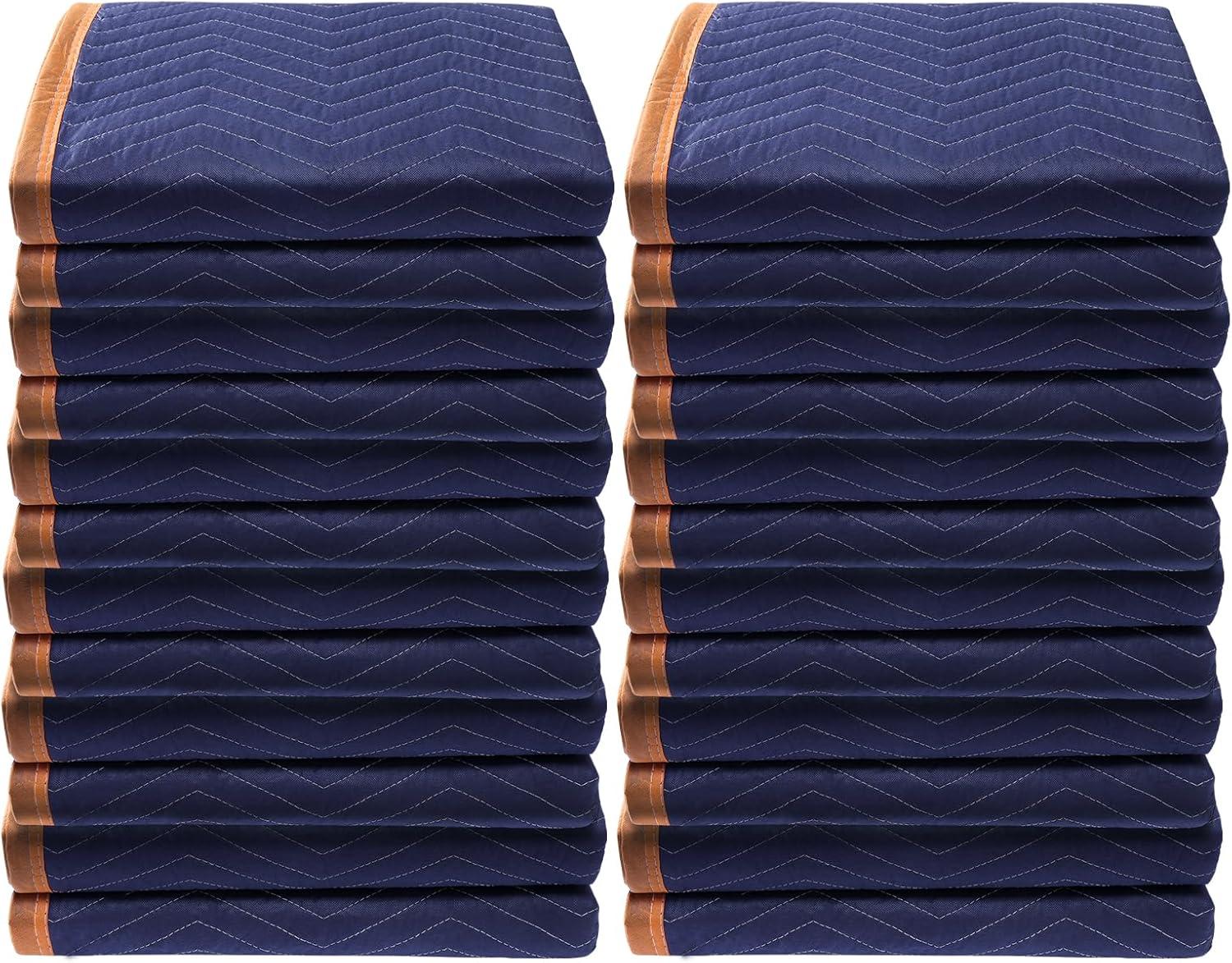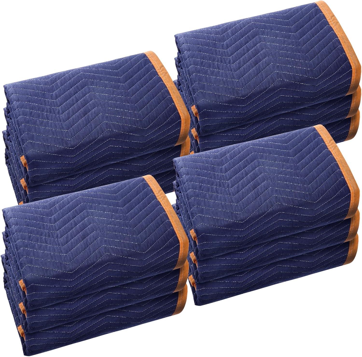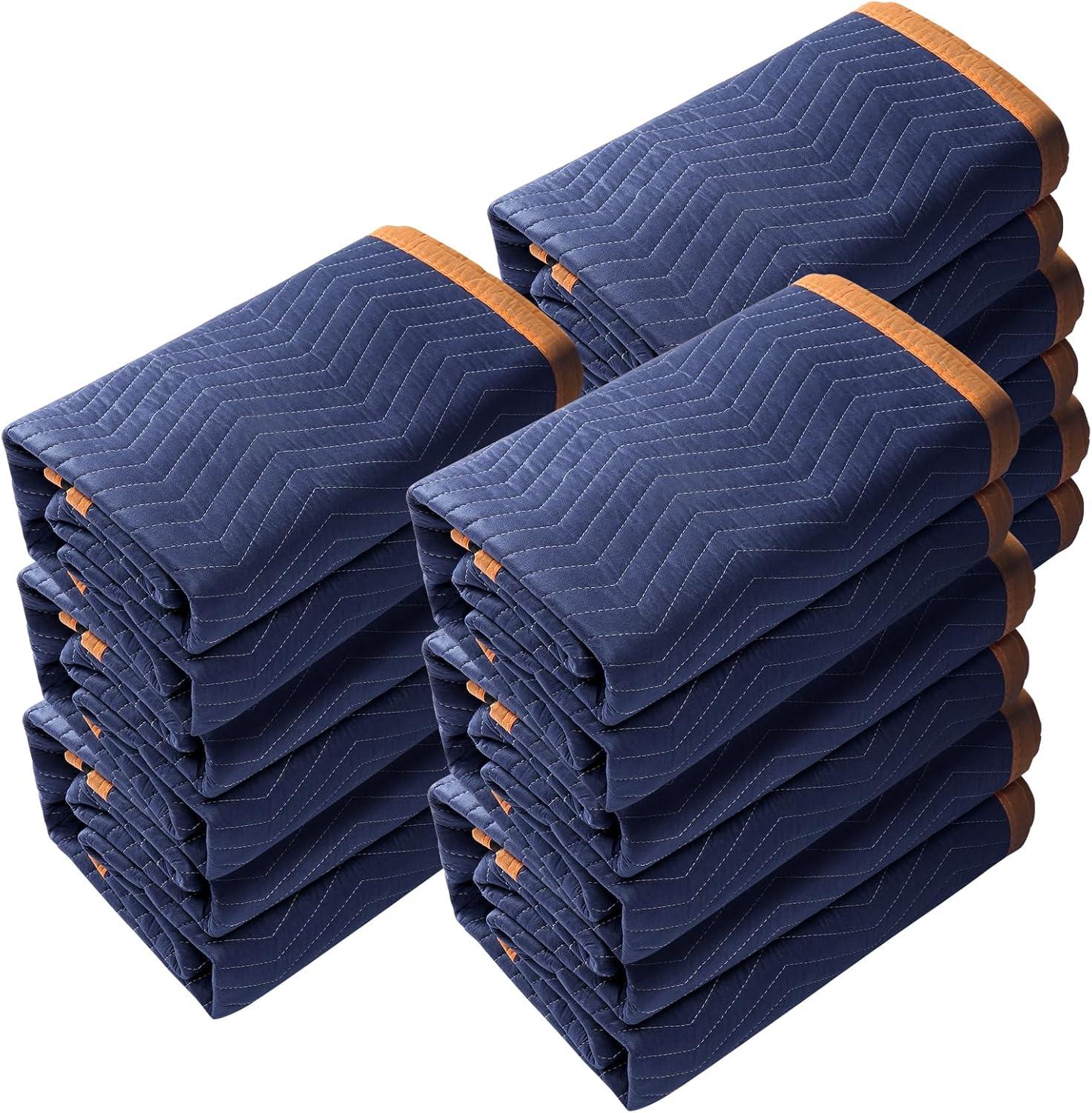 VEVOR Moving Blankets, 80″ x 72″, 35 lbs/dz Weight, 12 Packs, Professional Non-Woven & Recycled Cotton Packing Blanket, Heavy Duty Mover Pads for Protecting Furniture, Floors, Appliances, Blue/Orange(Black Side + Dark Blue Side + Orange Edges)