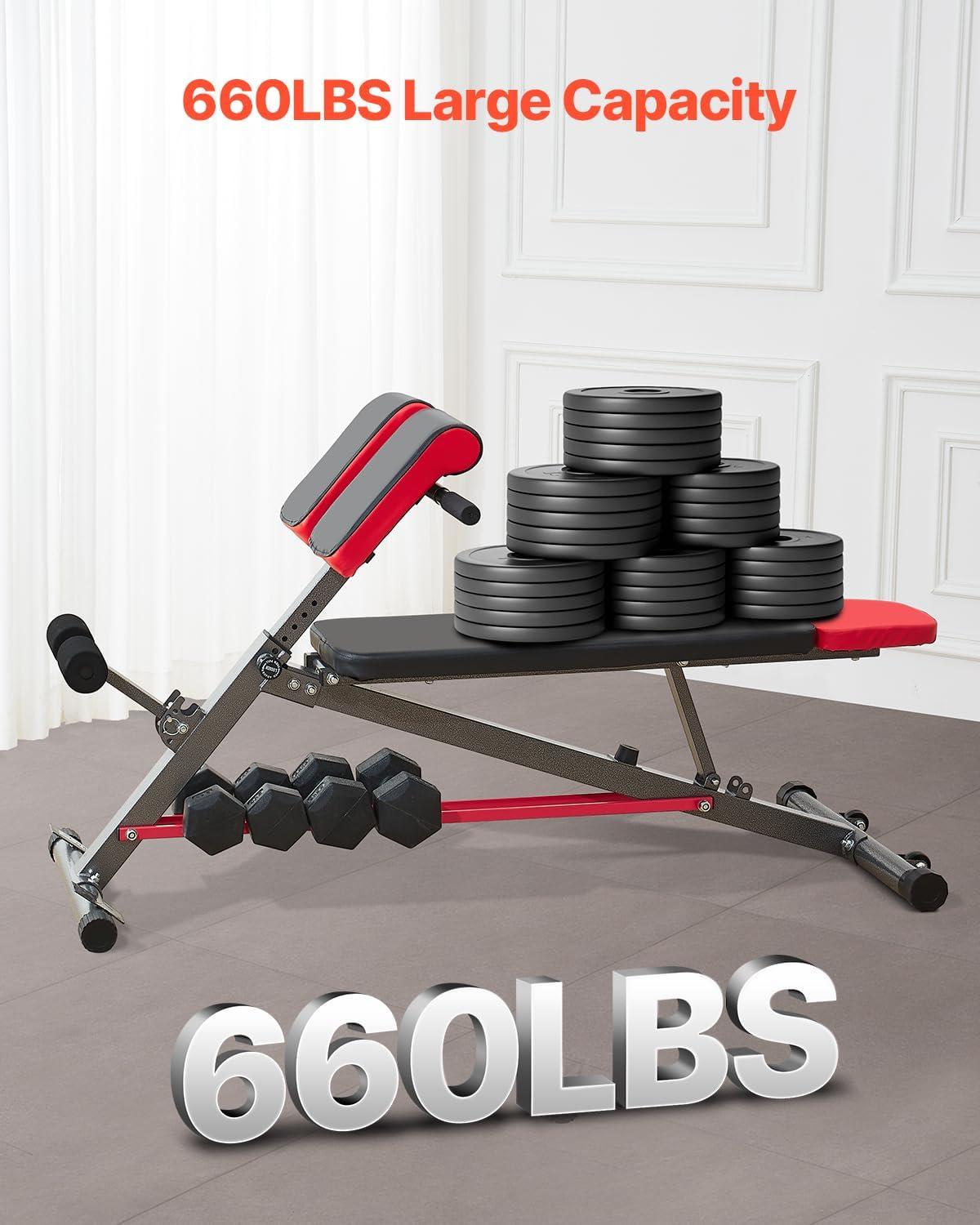 VEVOR Multi-Functional Weight Bench for Full Body Workout, Roman Chair Hyperextension Bench, Adjustable & Foldable Equipment for Back Arm Core Ab Workout, Sit Up Exercise Machine for Home Gym(Multi-Functional 660LB)