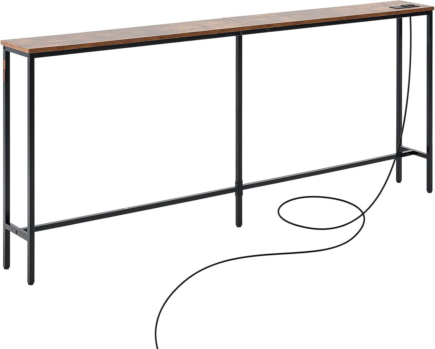 VEVOR Narrow Console Table, 70.9" Behind Couch Shelf with Power Outlets, 1-Tier Long Entryway Shelf, Narrow Sofa Table with Metal Frame and Charge Station, for Entryway, Hallway, Living Room(70.9 Inch)