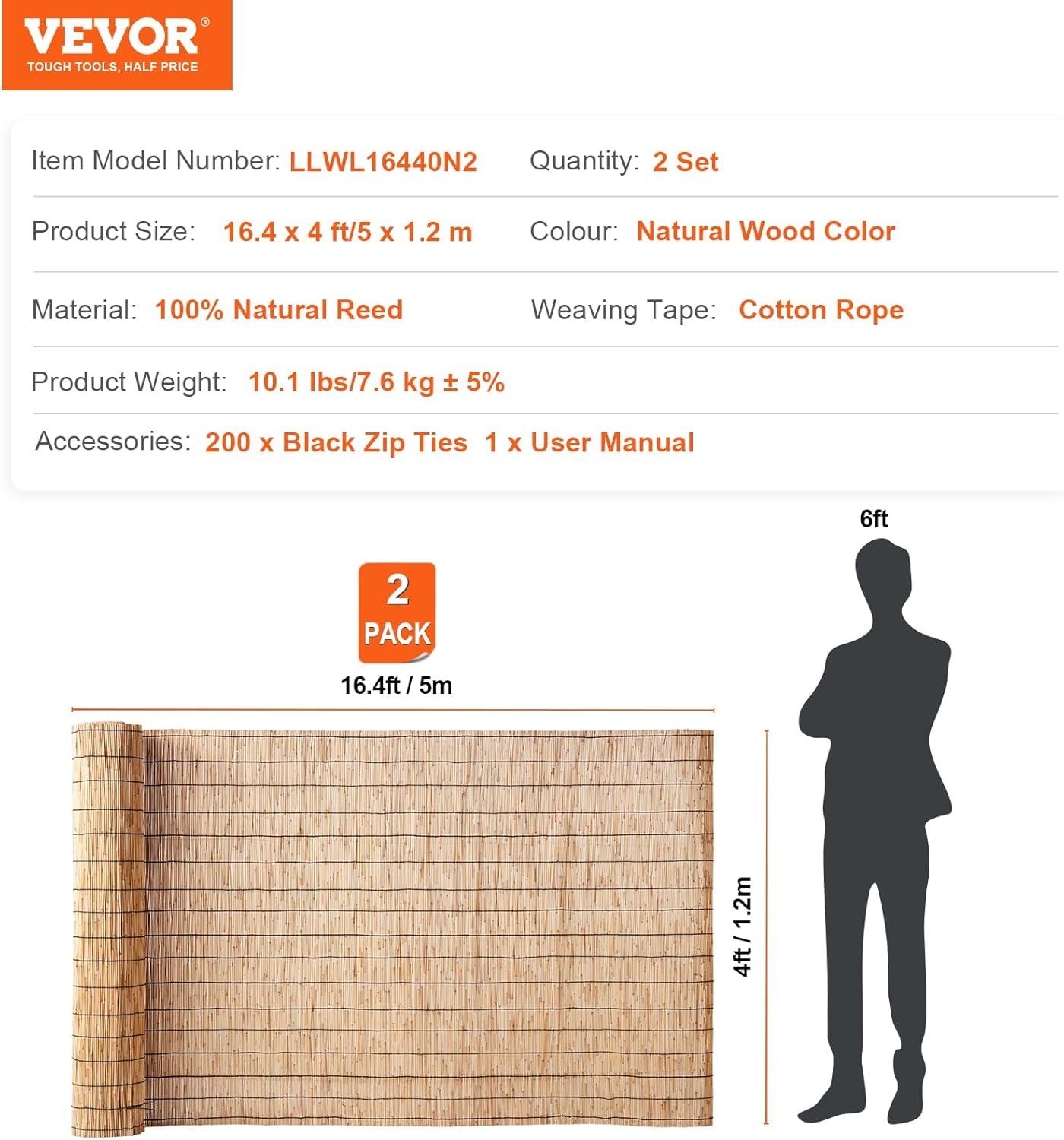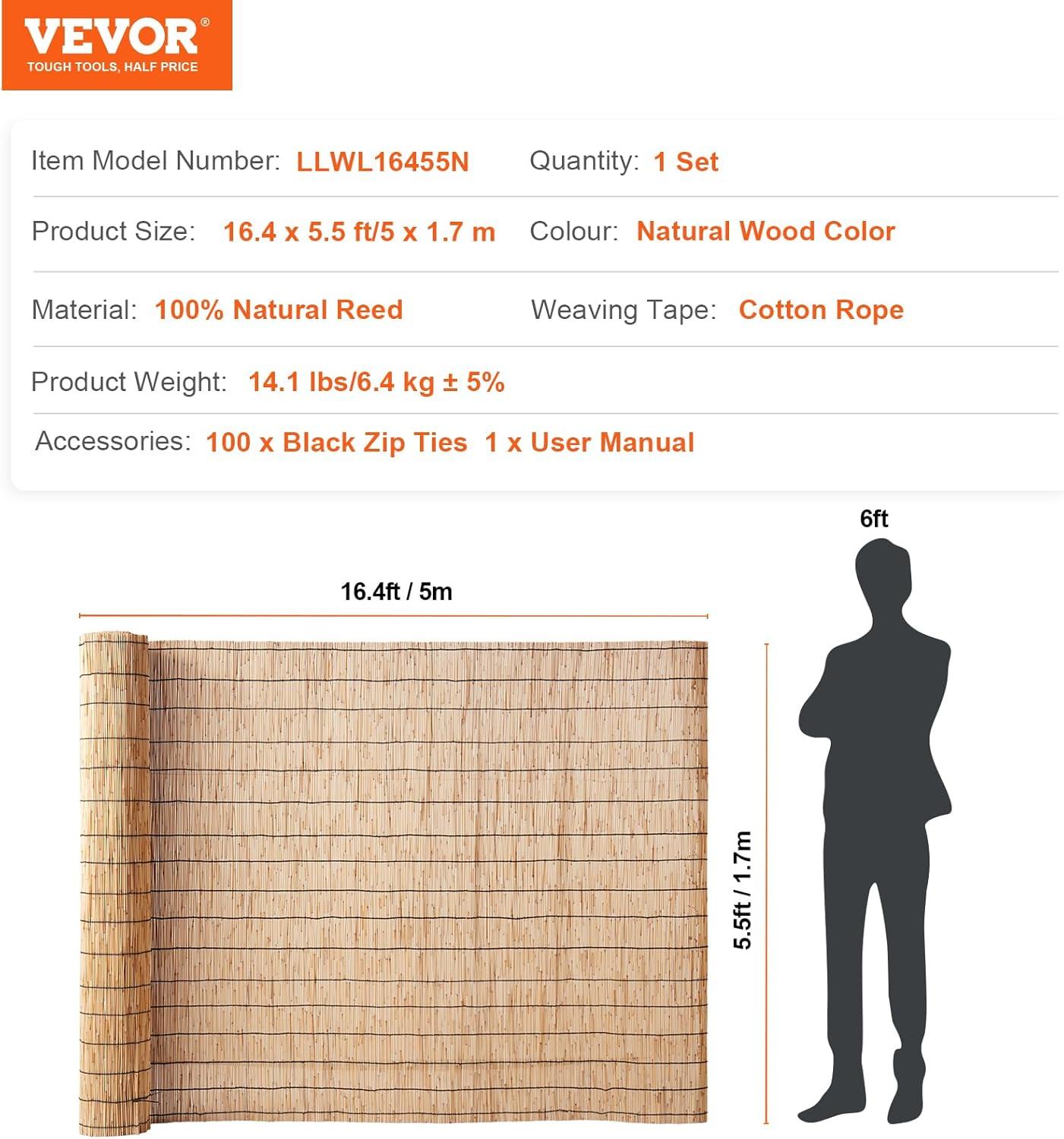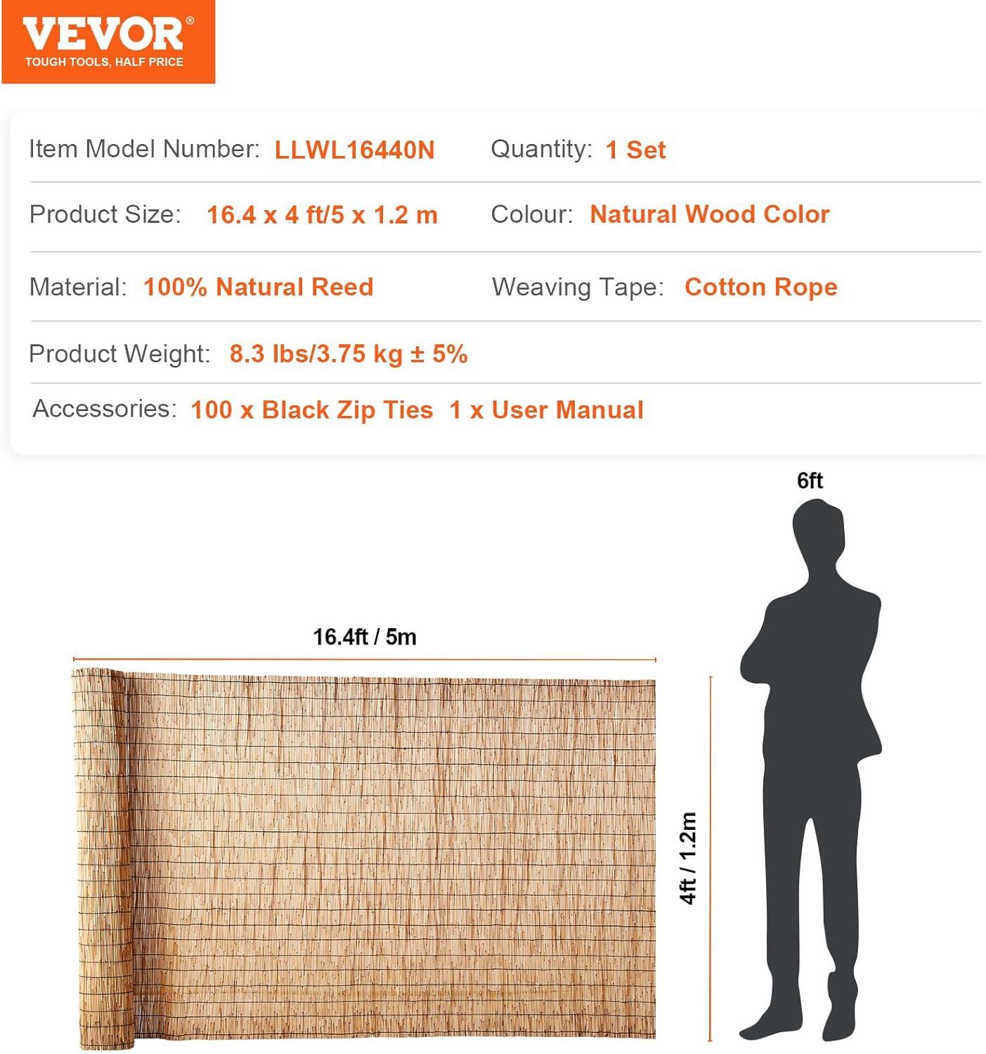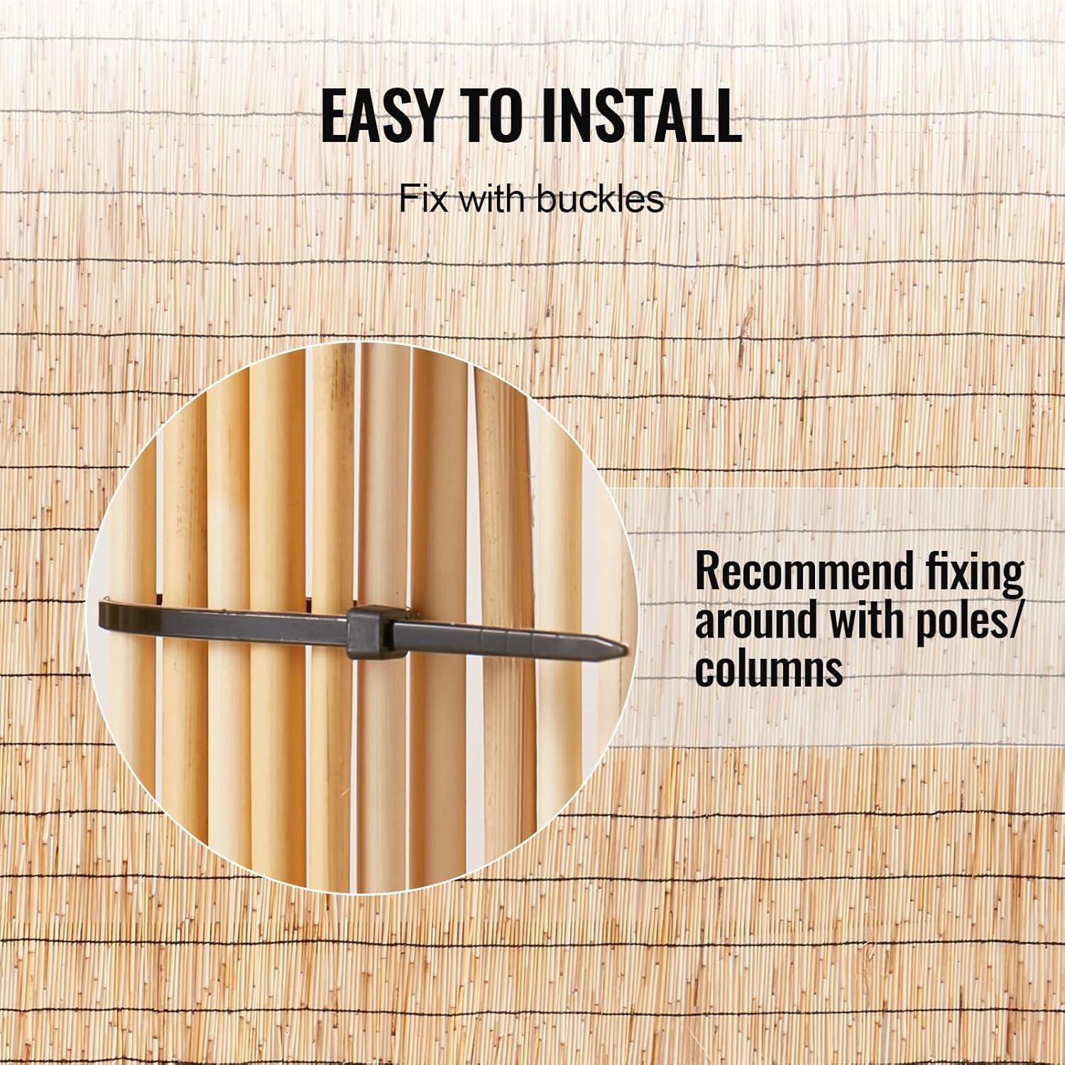 Easy Installation: This kit includes one natural reed fence panel (16.4 x 4 ft) and 100 zip ties. One person can easily attach the fence to any rail or post. Make sure to measure your space accurately before buying. For a smooth installation, we recommend wearing gloves as there might be slight burrs on the surface.