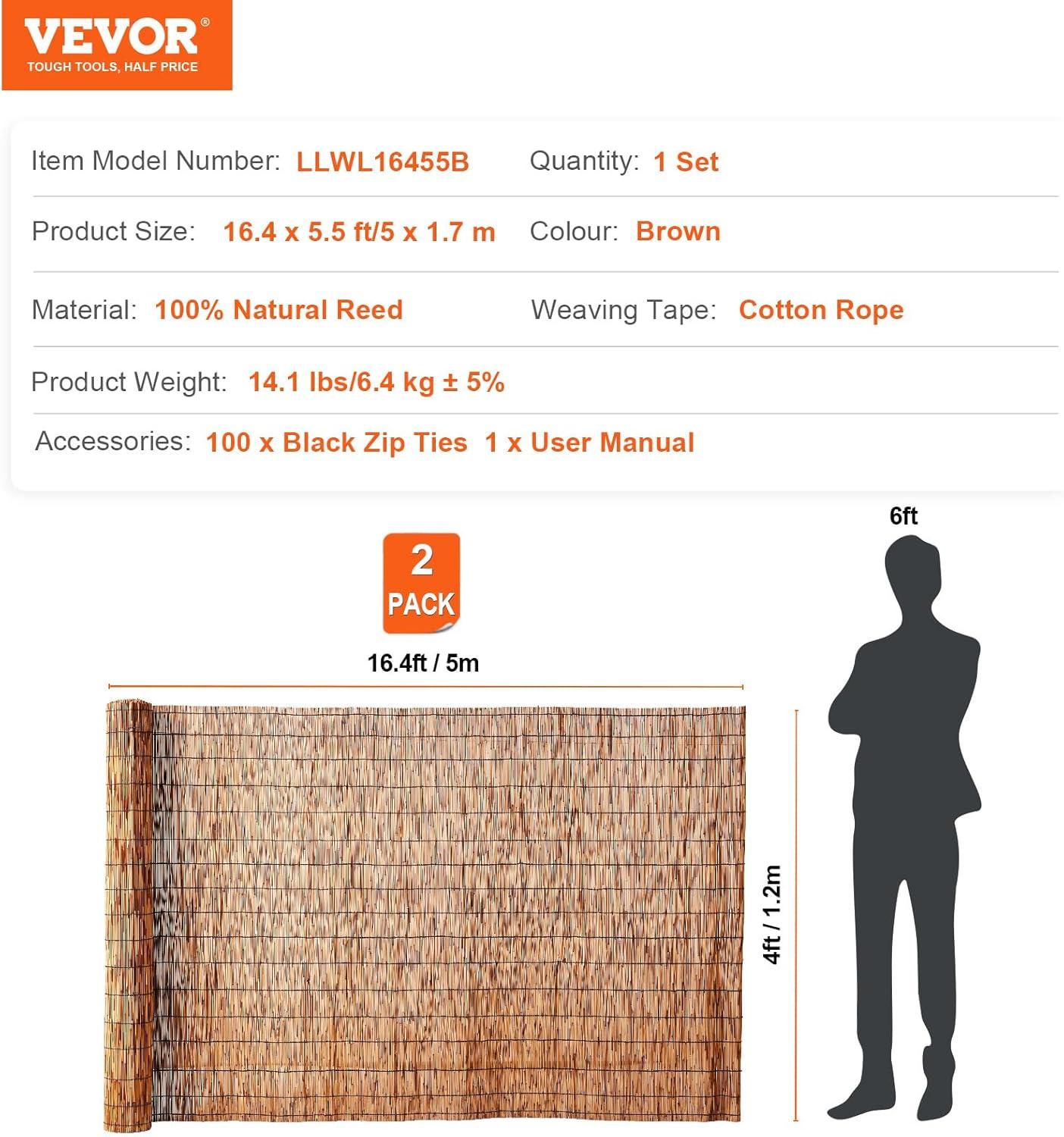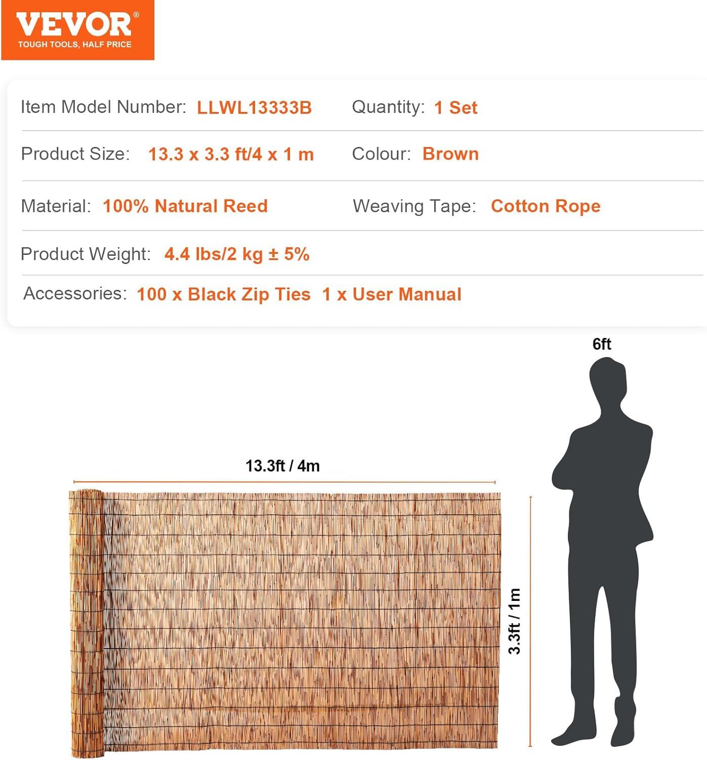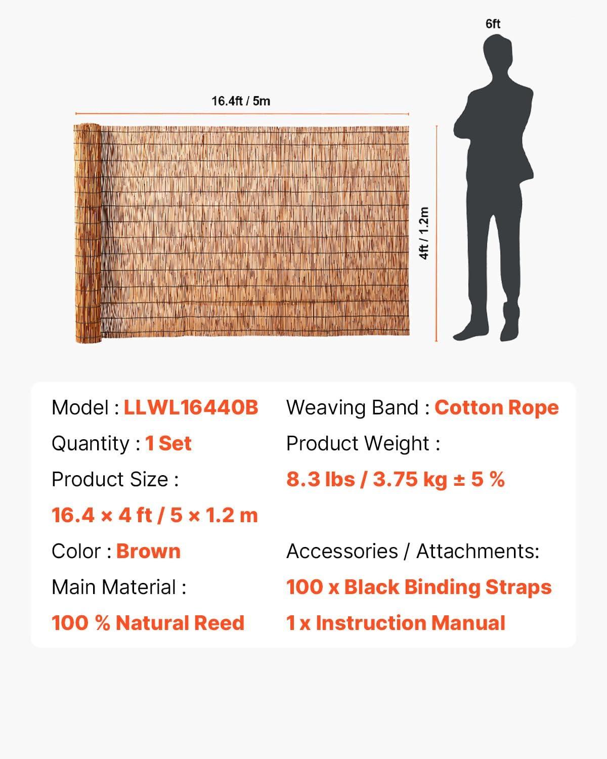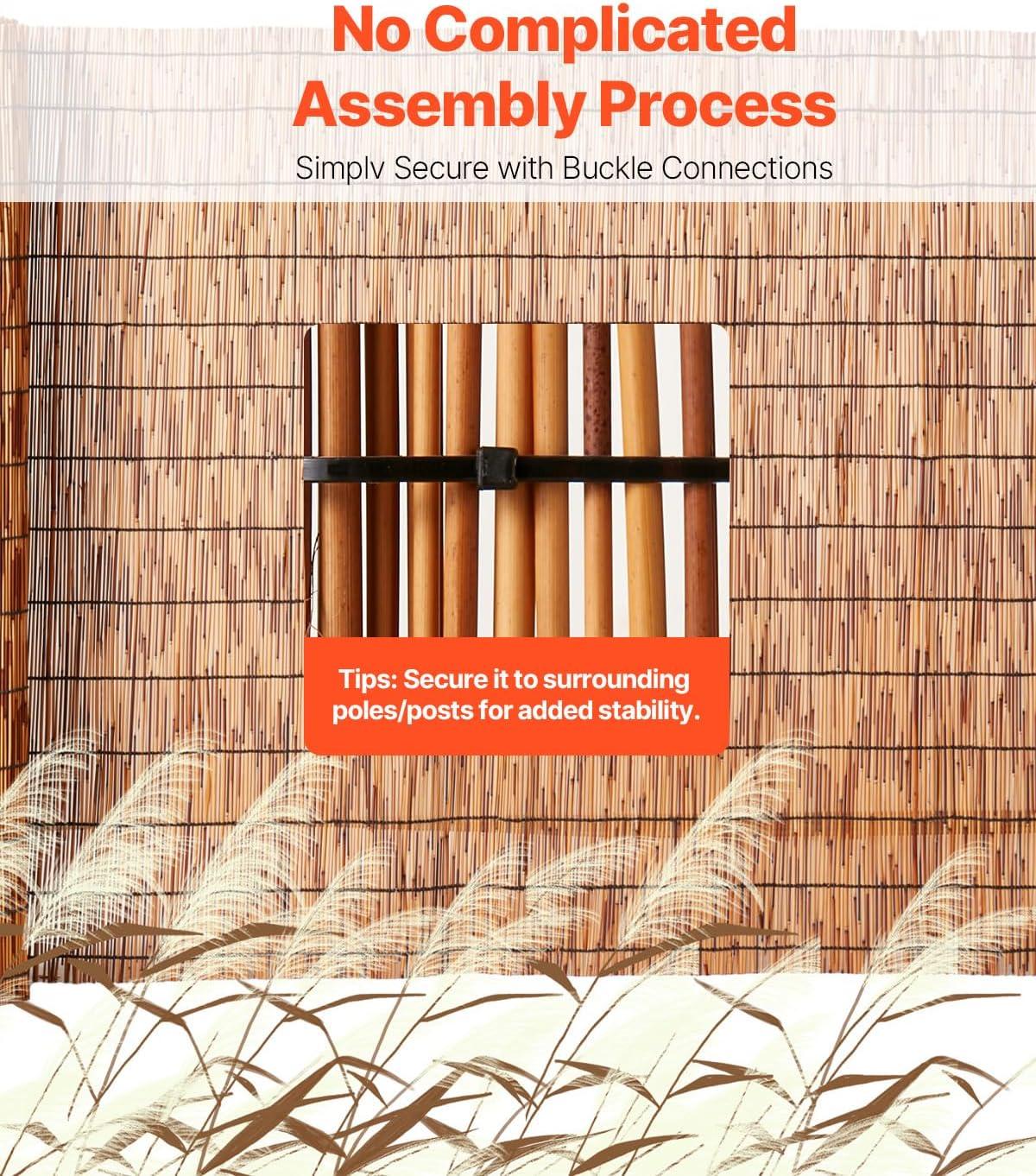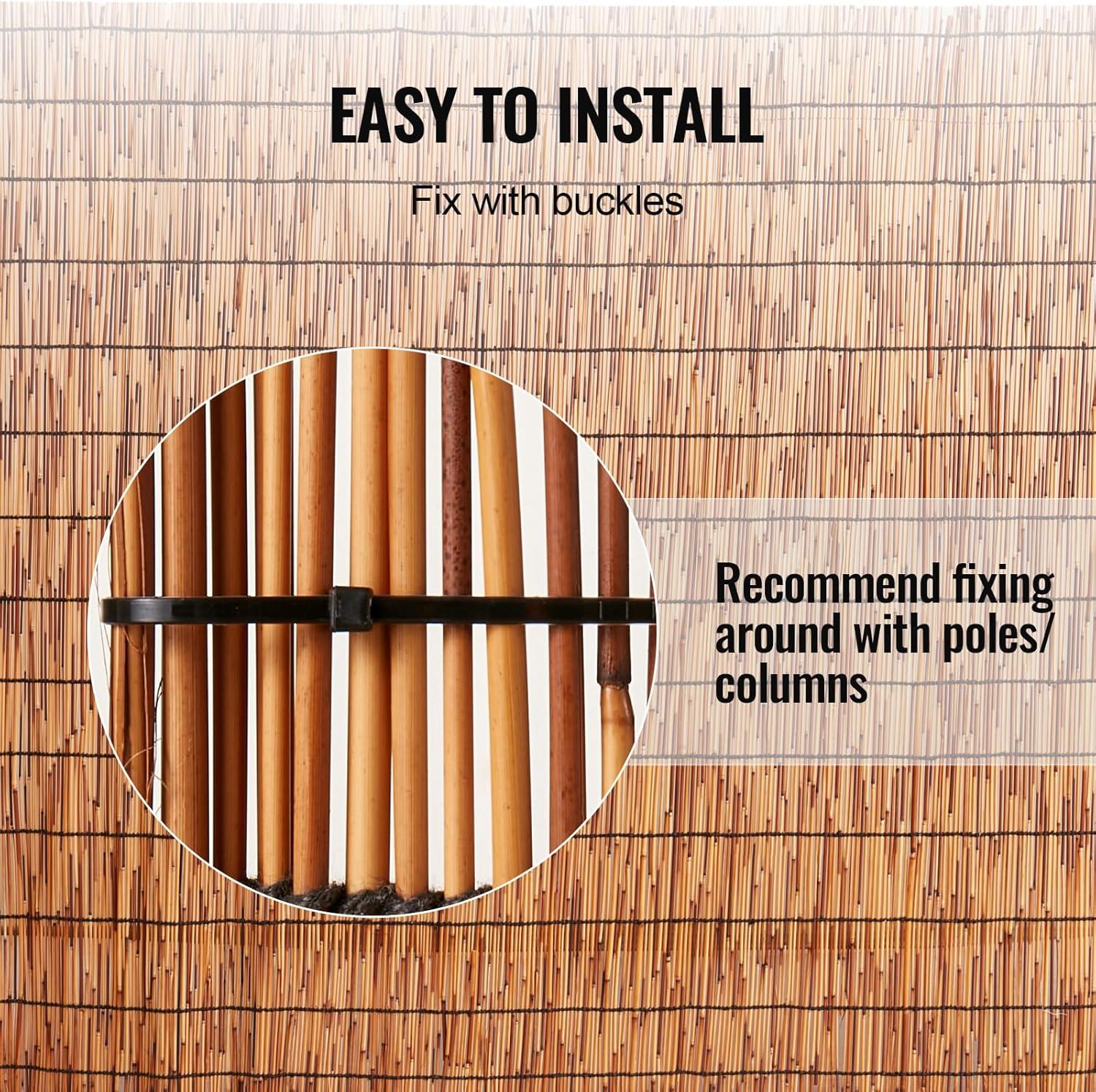Easy Installation: This kit includes one natural reed fence panel (16.4 x 4 ft) and 100 zip ties. One person can easily attach the fence to any rail or post. Make sure to measure your space accurately before buying. For a smooth installation, we recommend wearing gloves as there might be slight burrs on the surface.