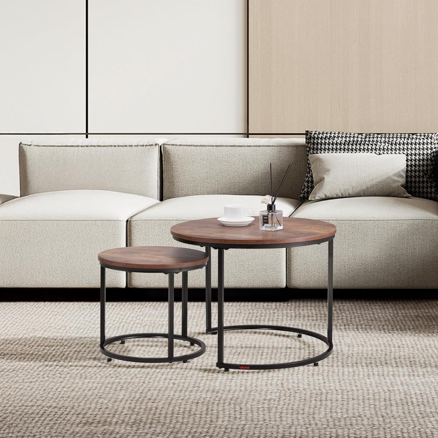 VEVOR Nesting Tables, Coffee Table Set of 2, 23.6 inch Round Coffee Table, Small Coffee Tables Night Stand with Metal Frame, for Living Room, Bedroom, Office (White & Gold)(Brown)